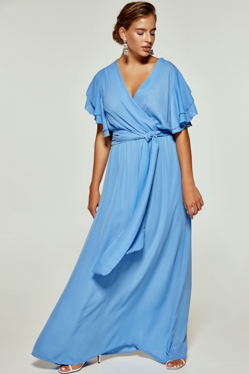 Φόρεμα μάξι κρουαζέ με ζωνάκι στη μέση, ύφασμα μουσελίνα, ενσωματωμένη φόδρα, κανονική εφαρμογή, εβαζέ γραμμή