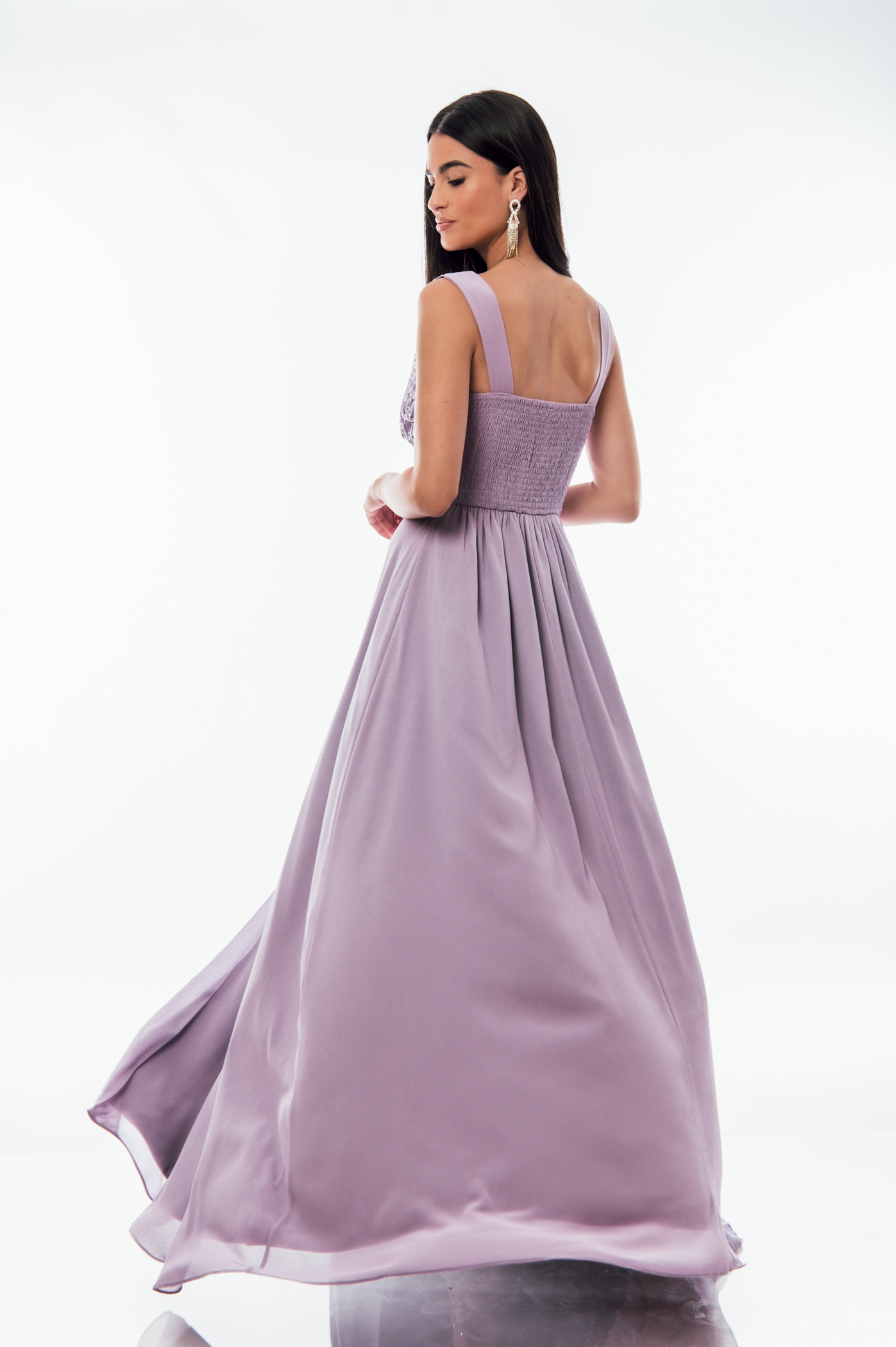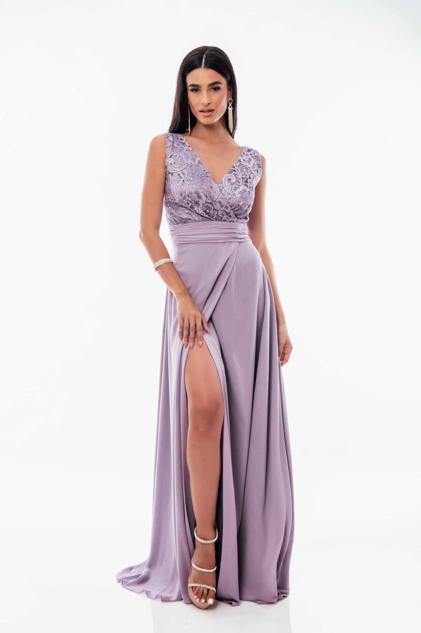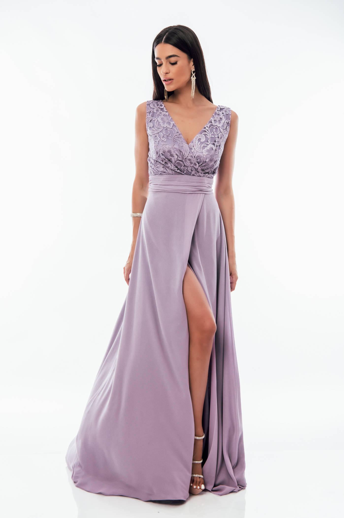 Φόρεμα αμπιγιέ με σκίσιμο, δαντέλα στο πάνω μέρος με ve και σφιγκοφωλιά στο πίσω μέρος.