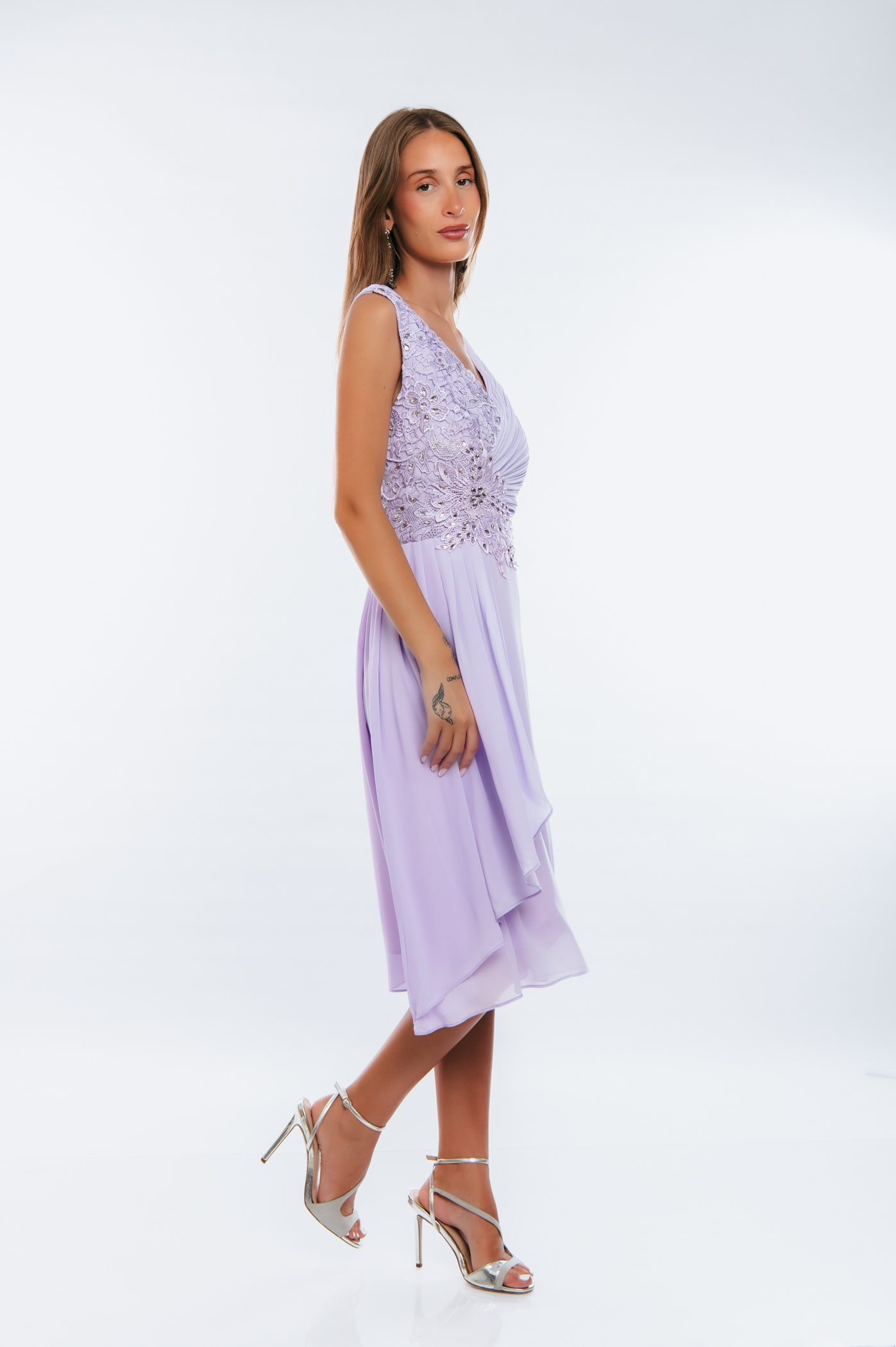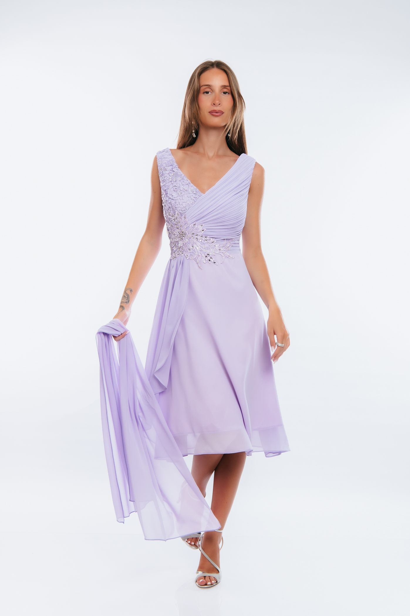 Φόρεμα αμπιγιέ με εσάρπα με σχέδιο κέντημα και στρας και πλισέ στο πάνω μέρος και σφιγκοφωλιά πίσω.