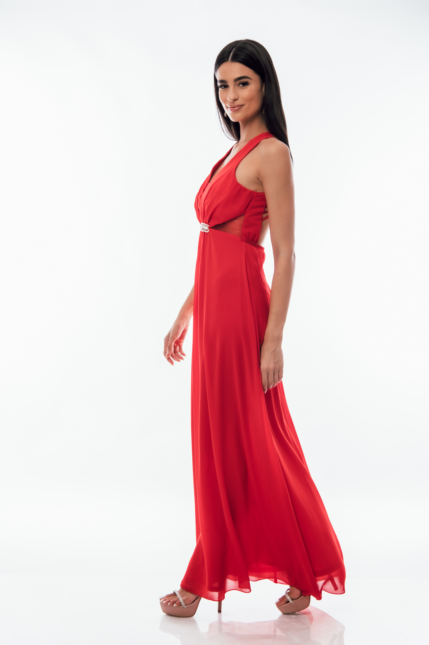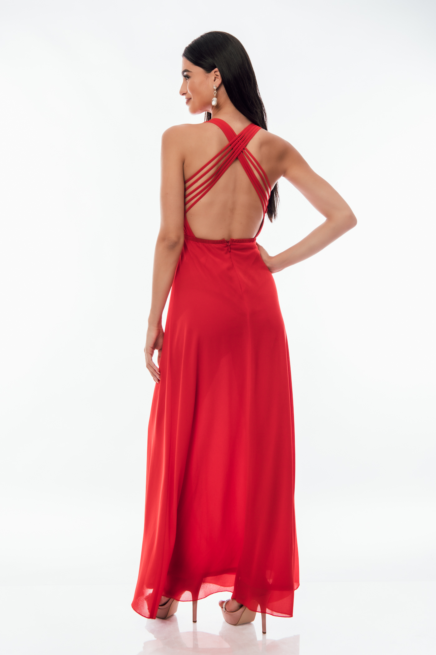 Φόρεμα αμπιγιέ με λεπτομέρειες στη μέση και ανοιστή πλάτη με κορδόνια.
