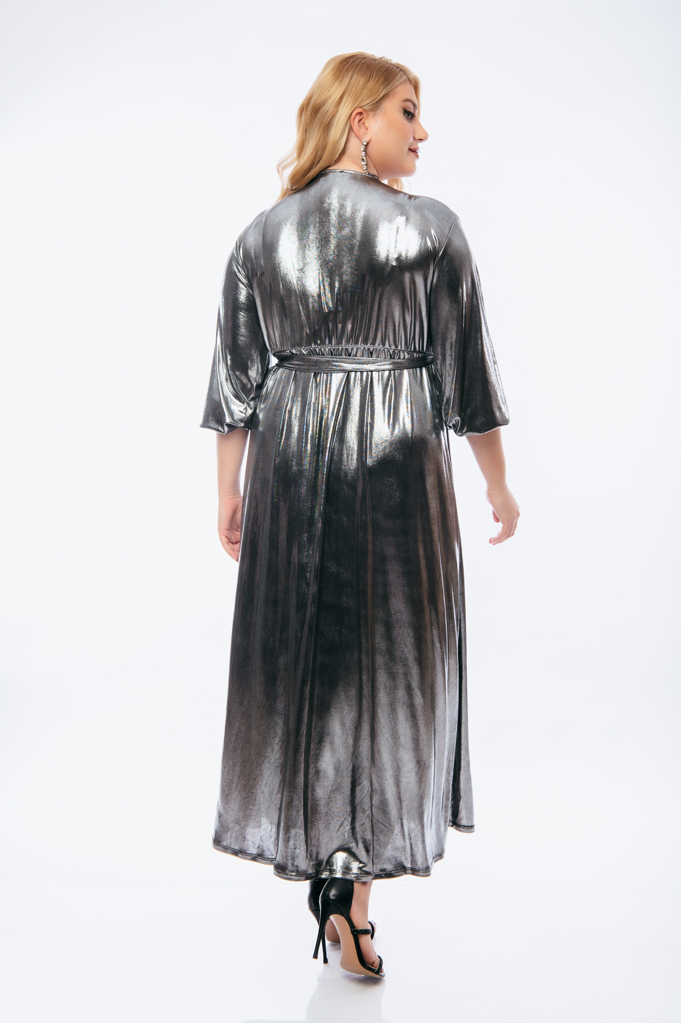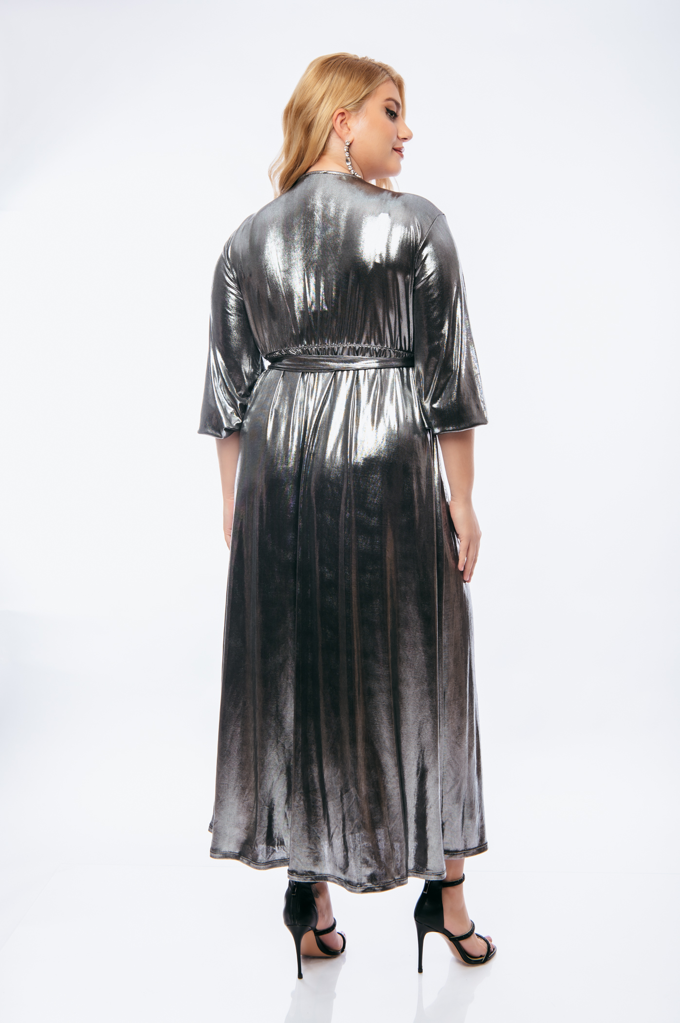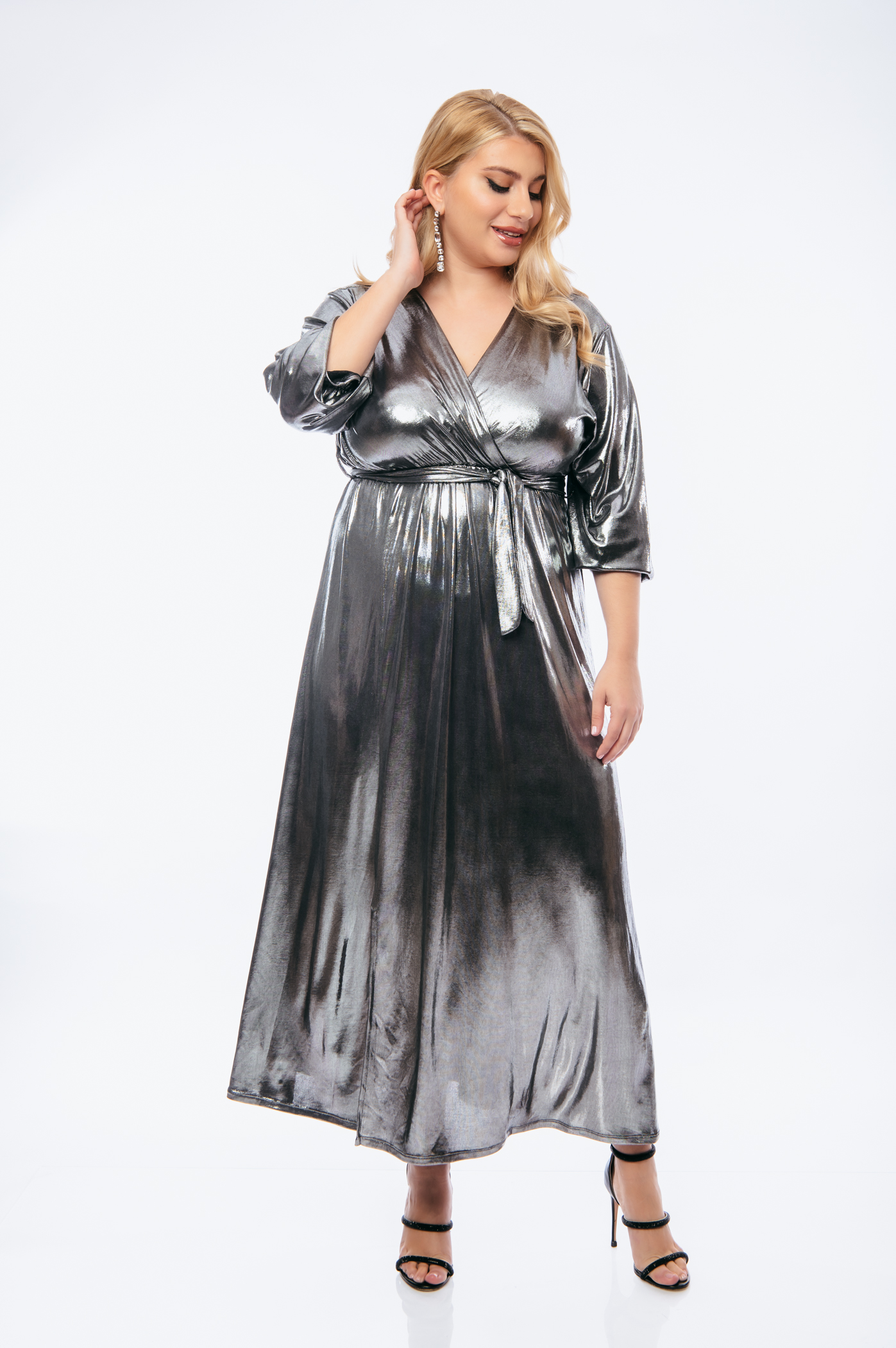 Φόρεμα κρουαζέ midi με λάστιχο στο μανίκι και στην μέση.