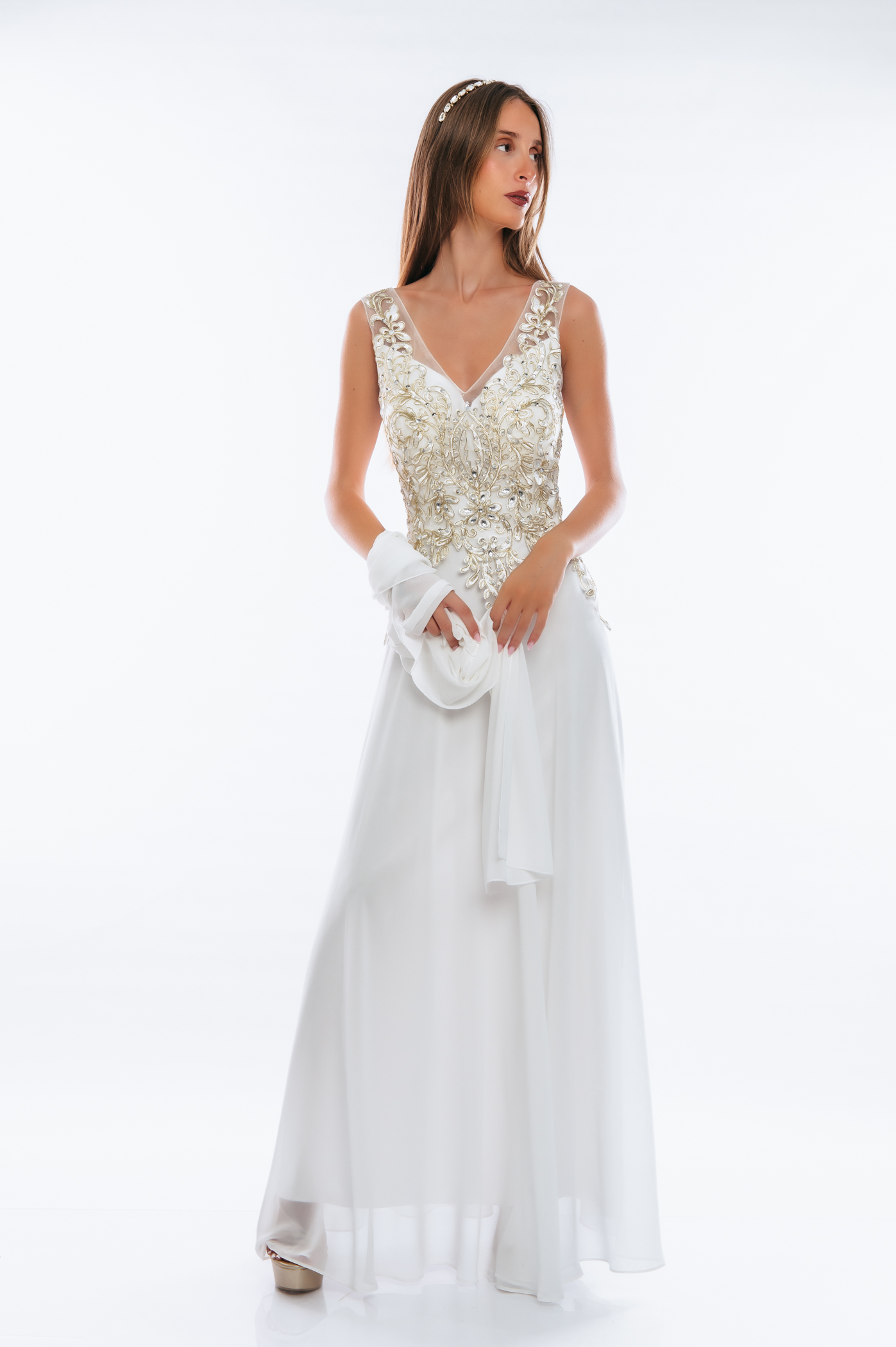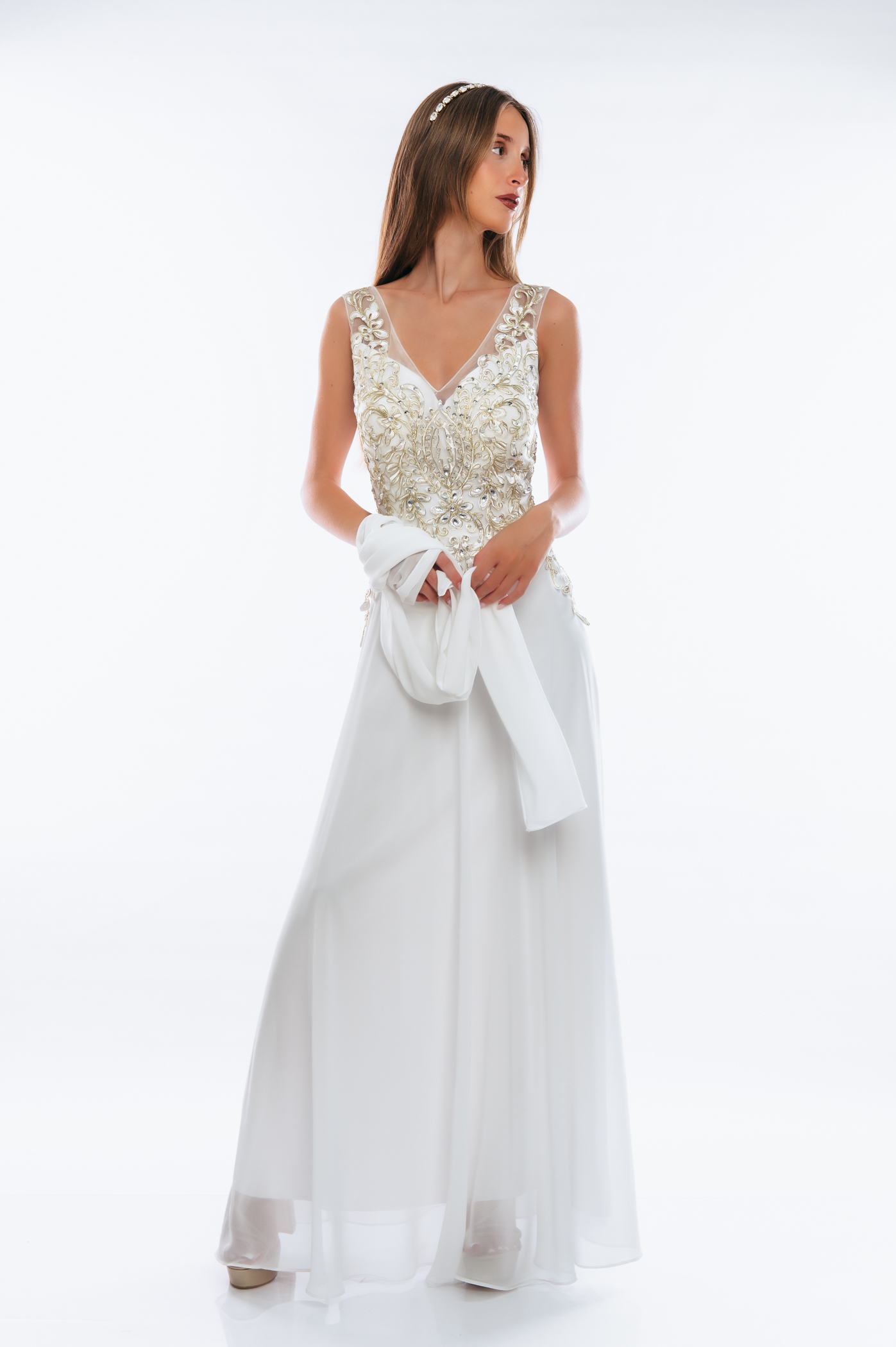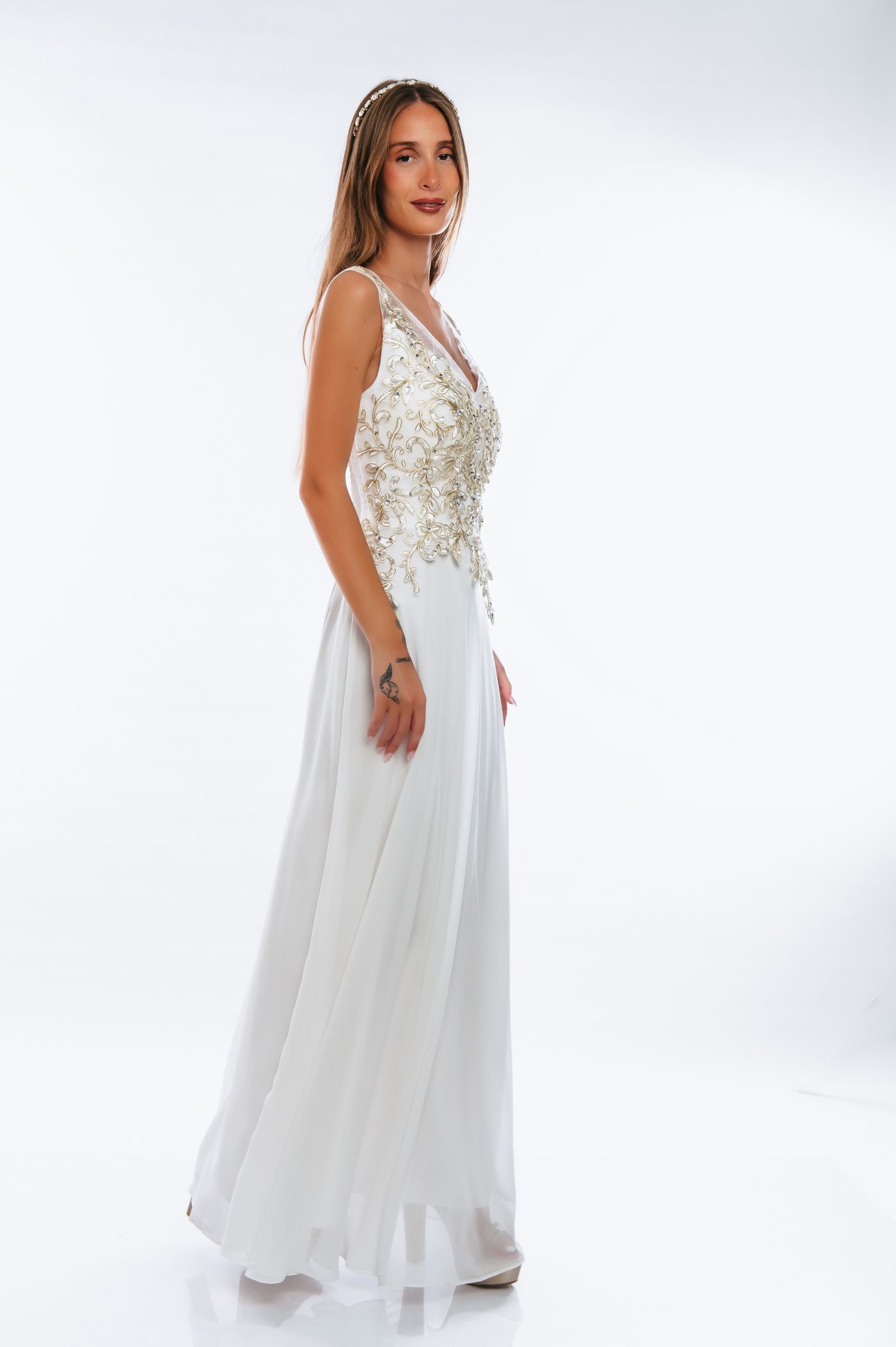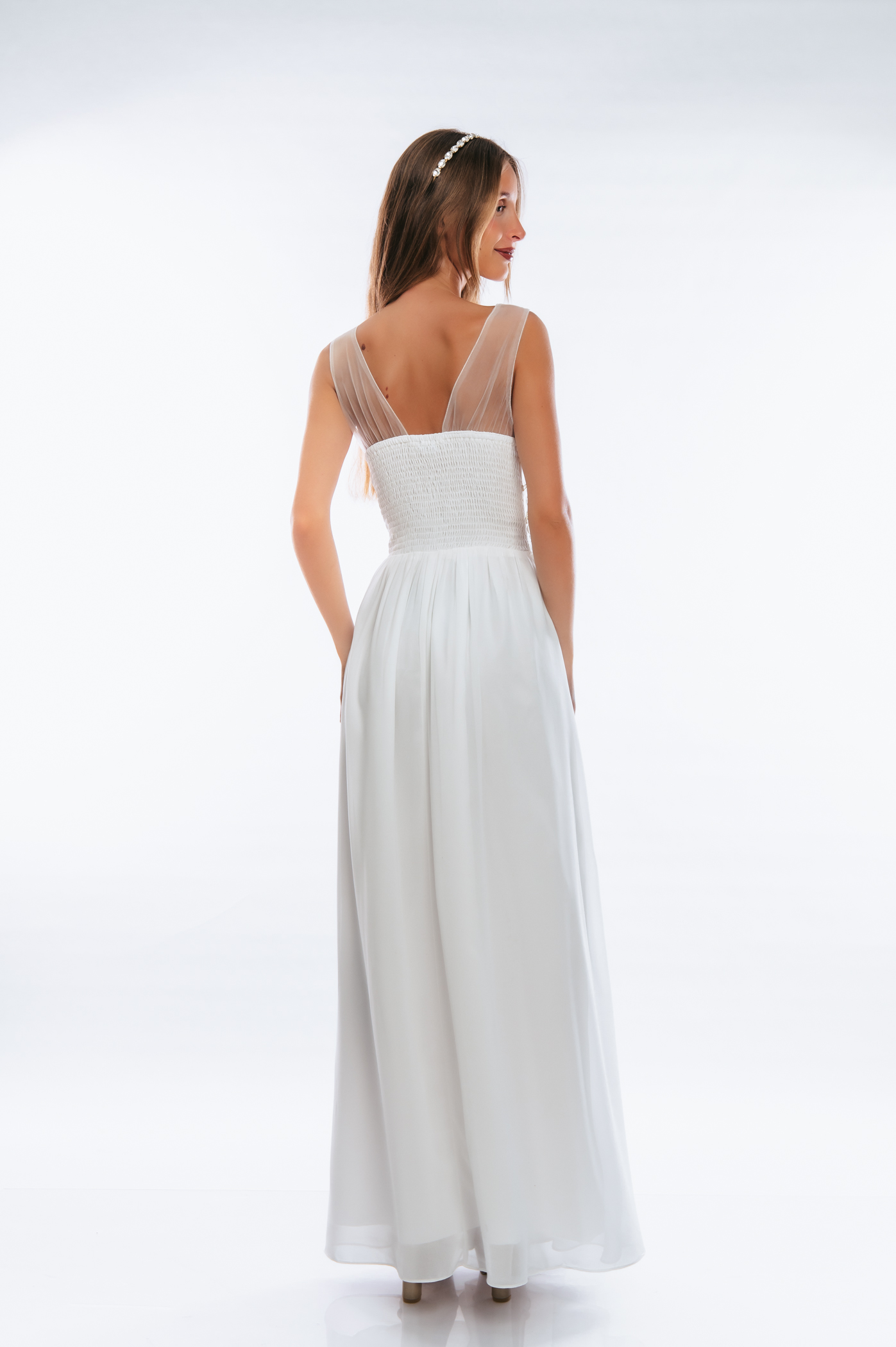 Φόρεμα με κεντημένη δαντέλα στο πάνω μέρος και σφικοφωλιά στο πίσω.