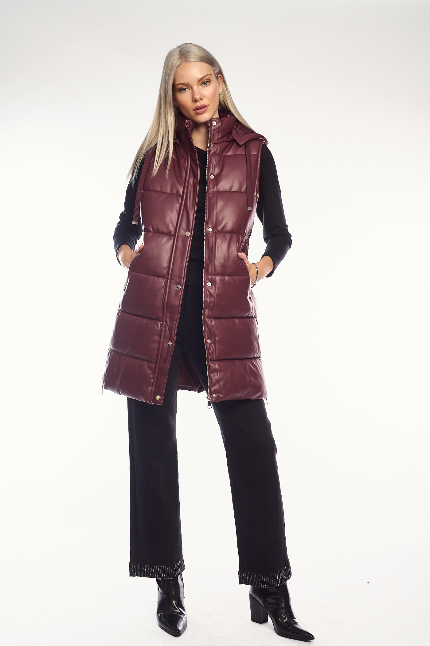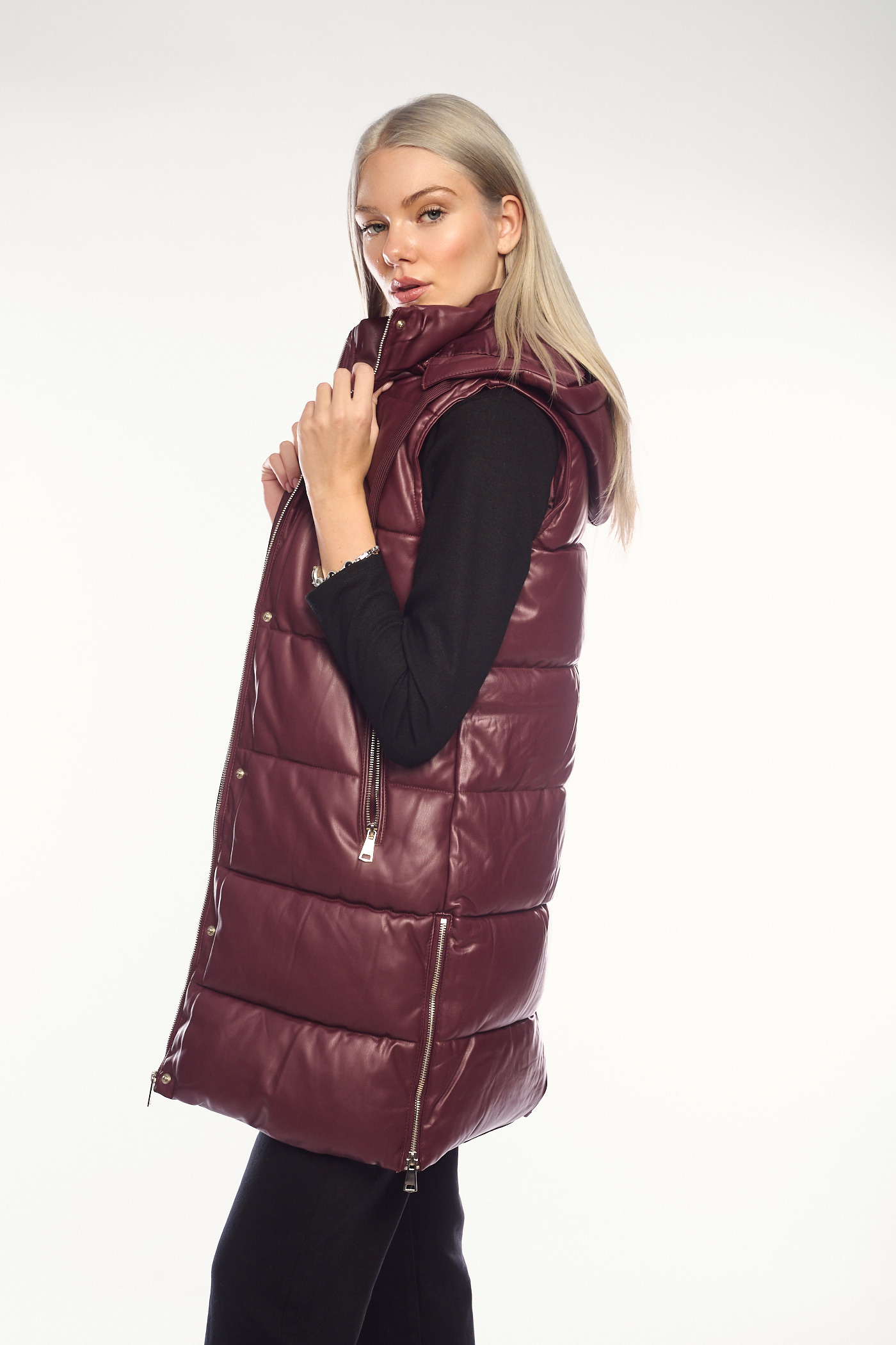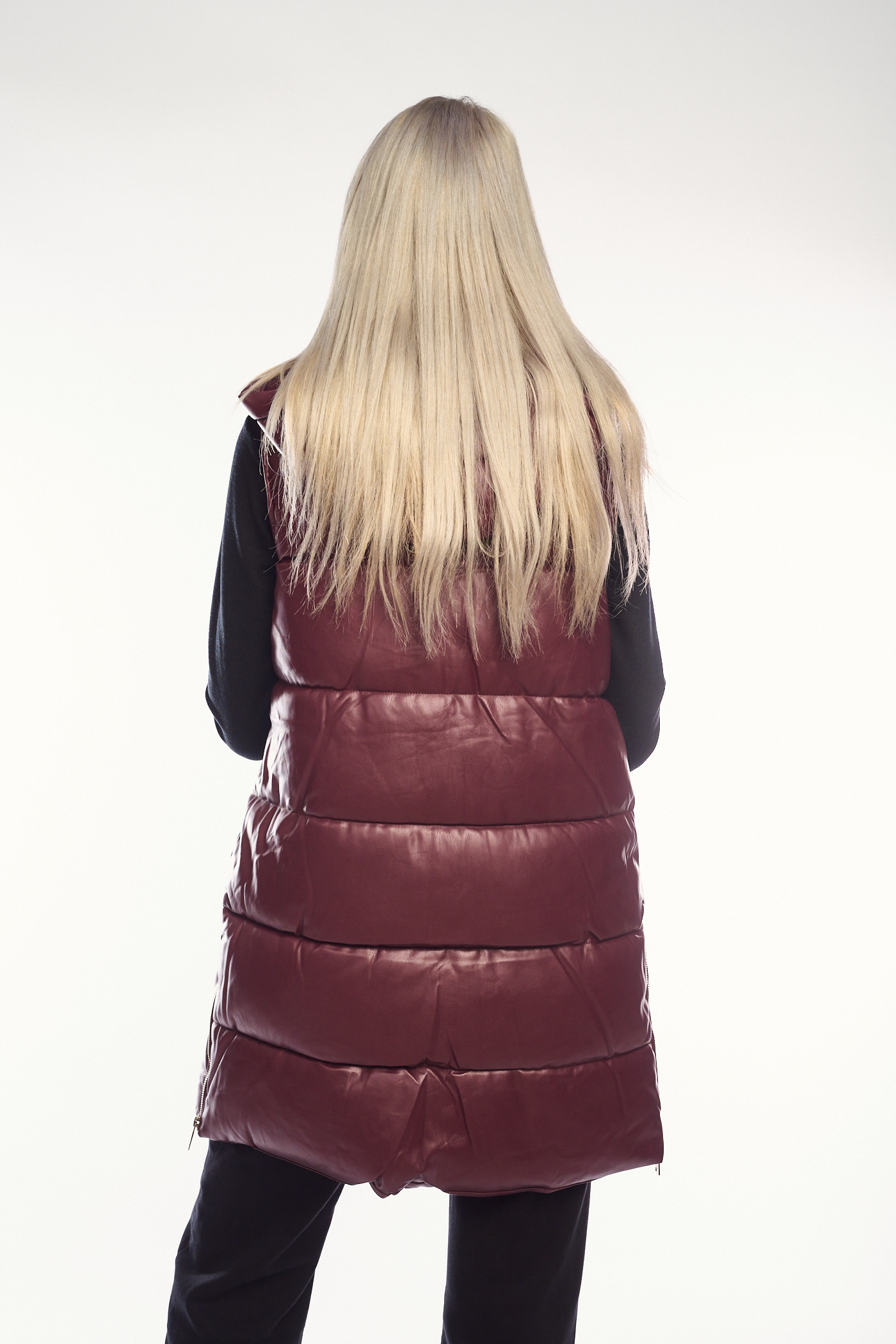 Μακρύ μπορντό γιλέκο δερματίνης Puffer-2333G