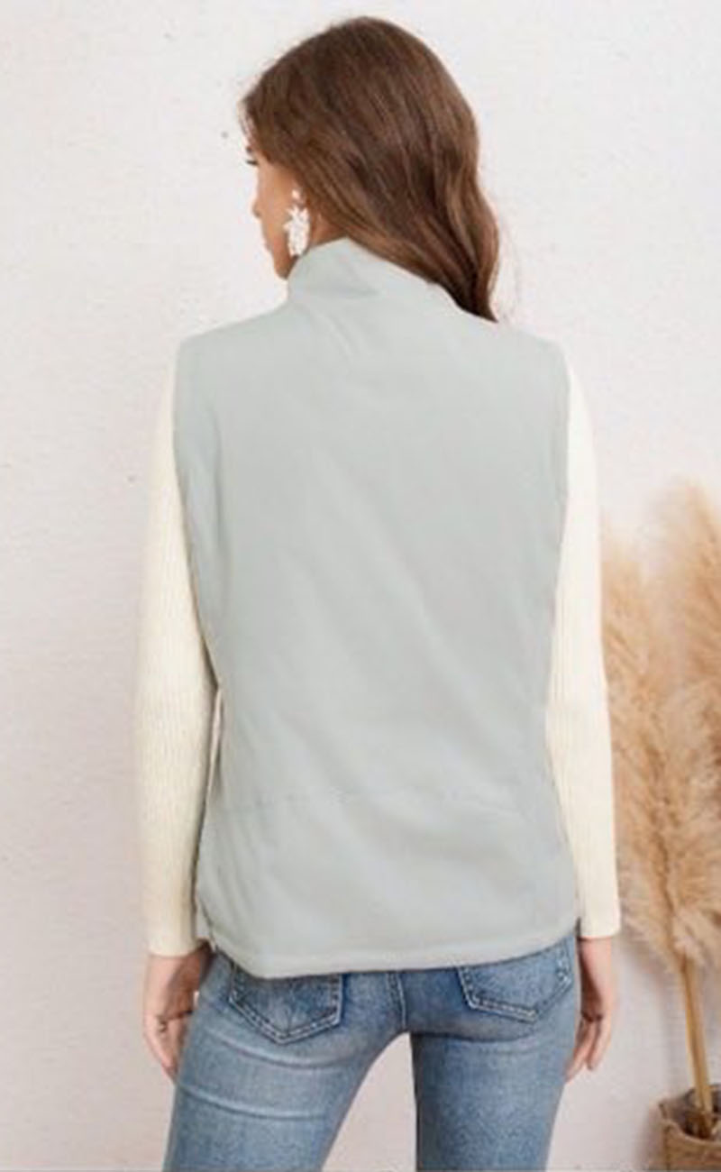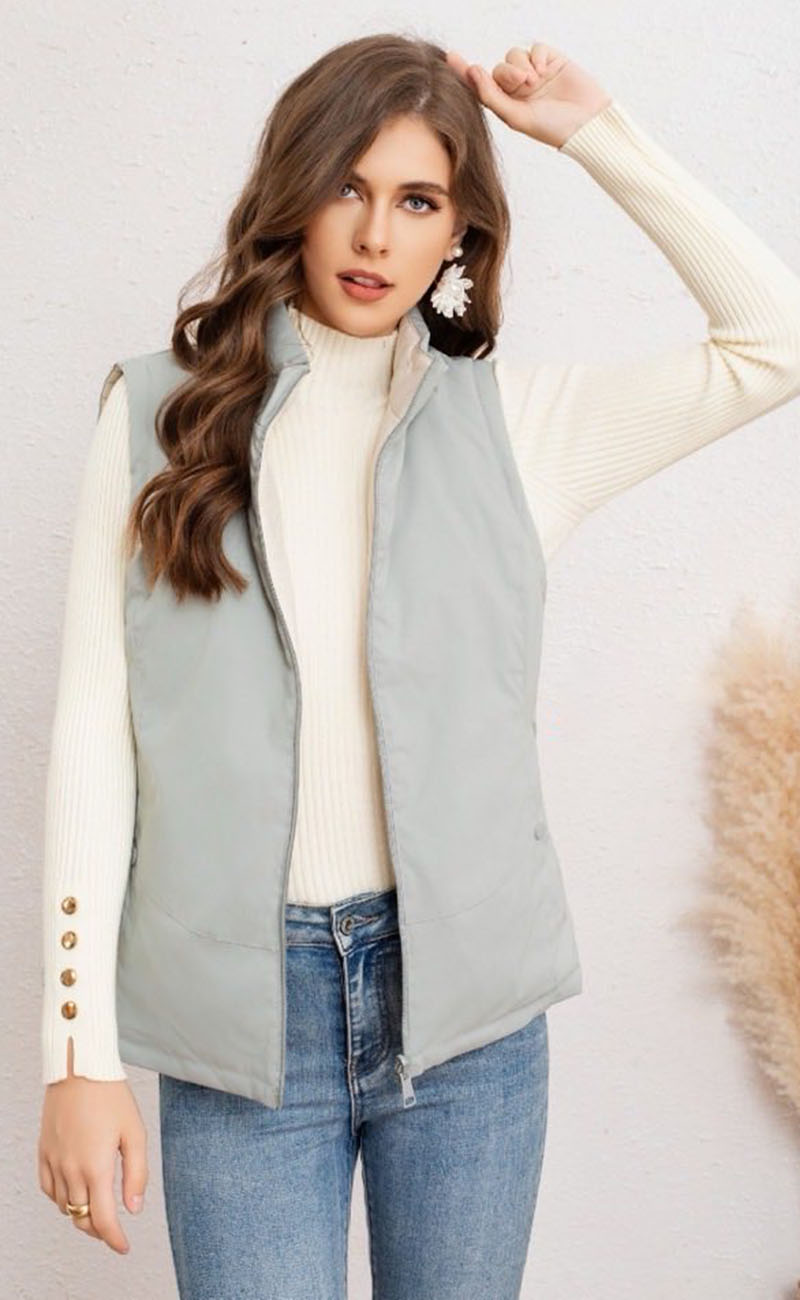 Γυναικείο Αμάνικο Μπουφάν Διπλής Όψης σε Απαλό Γαλάζιο και Εκρού με Όρθιο Γιακά-A26332
