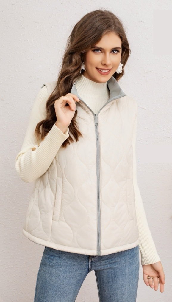 Αναδείξτε το καθημερινό σας στυλ με αυτό το κομψό αμάνικο μπουφάν (γιλέκο) διπλής όψης σε μια ιδιαίτερη και διακριτική γαλάζια από την μία πλευρά και εκρού από την άλλη. Σχεδιασμένο με minimal αισθητική και λεία υφή, διαθέτει όρθιο γιακά που προσφέρει προστασία και στυλ, καθώς και κλείσιμο με φερμουάρ σε όλο το μήκος. Η ελαφριά του επένδυση το καθιστά το ιδανικό κομμάτι για layering κατά τις μεταβατικές περιόδους, καθώς μπορεί να φορεθεί άνετα πάνω από πλεκτά ζιβάγκο, μακρυμάνικες μπλούζες ή ακόμη και λεπτά πουκάμισα. Η κανονική και άνετη γραμμή του σε συνδυασμό με τις διακριτικές πλαϊνές τσέπες, το καθιστούν μια εξαιρετικά πρακτική επιλογή για τις casual εμφανίσεις σας στην πόλη ή τις εκδρομές σας.