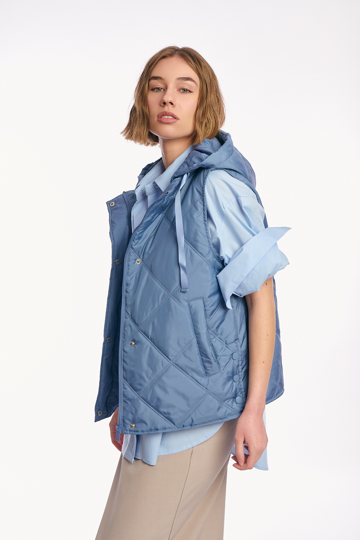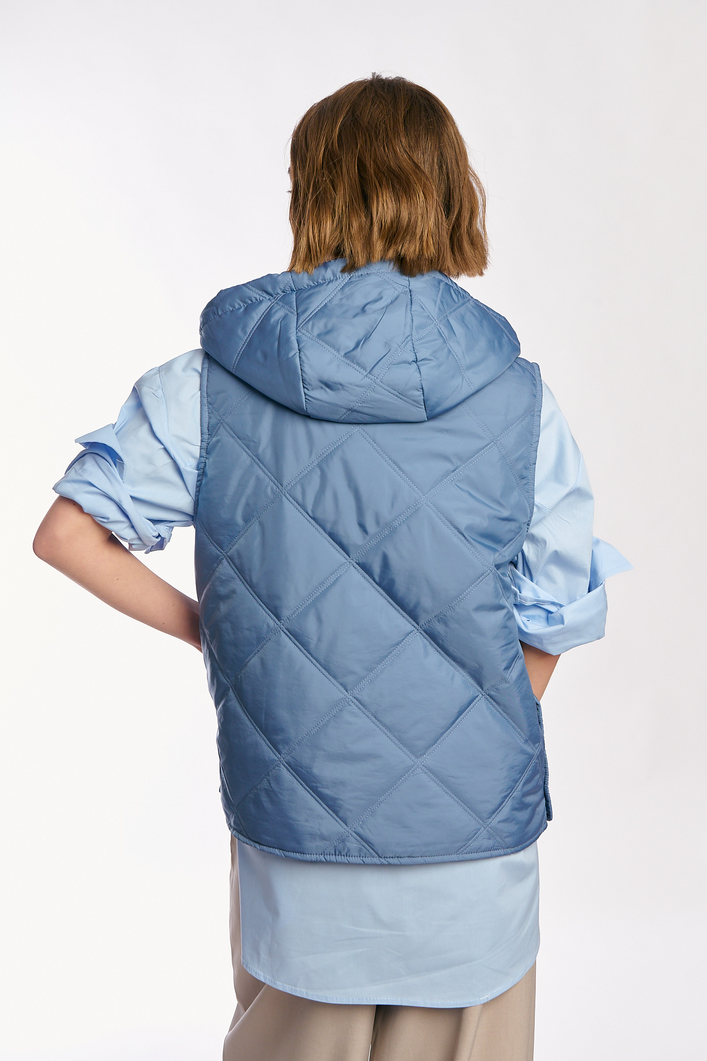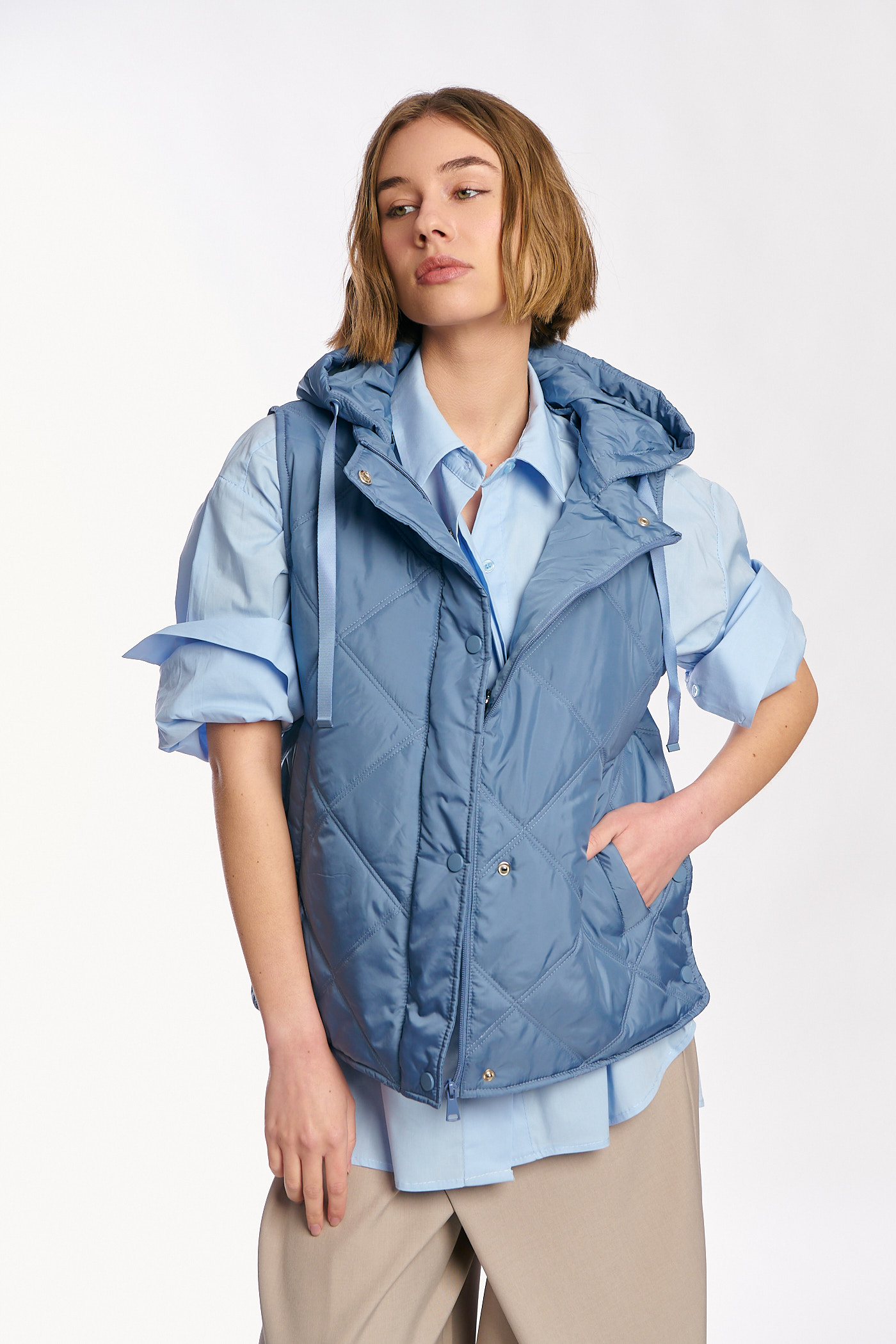 Γυναικείο Καπιτονέ Γιλέκο με Αποσπώμενη Κουκούλα και Ρομβοειδή Ραφή σε Μπλε-A26350