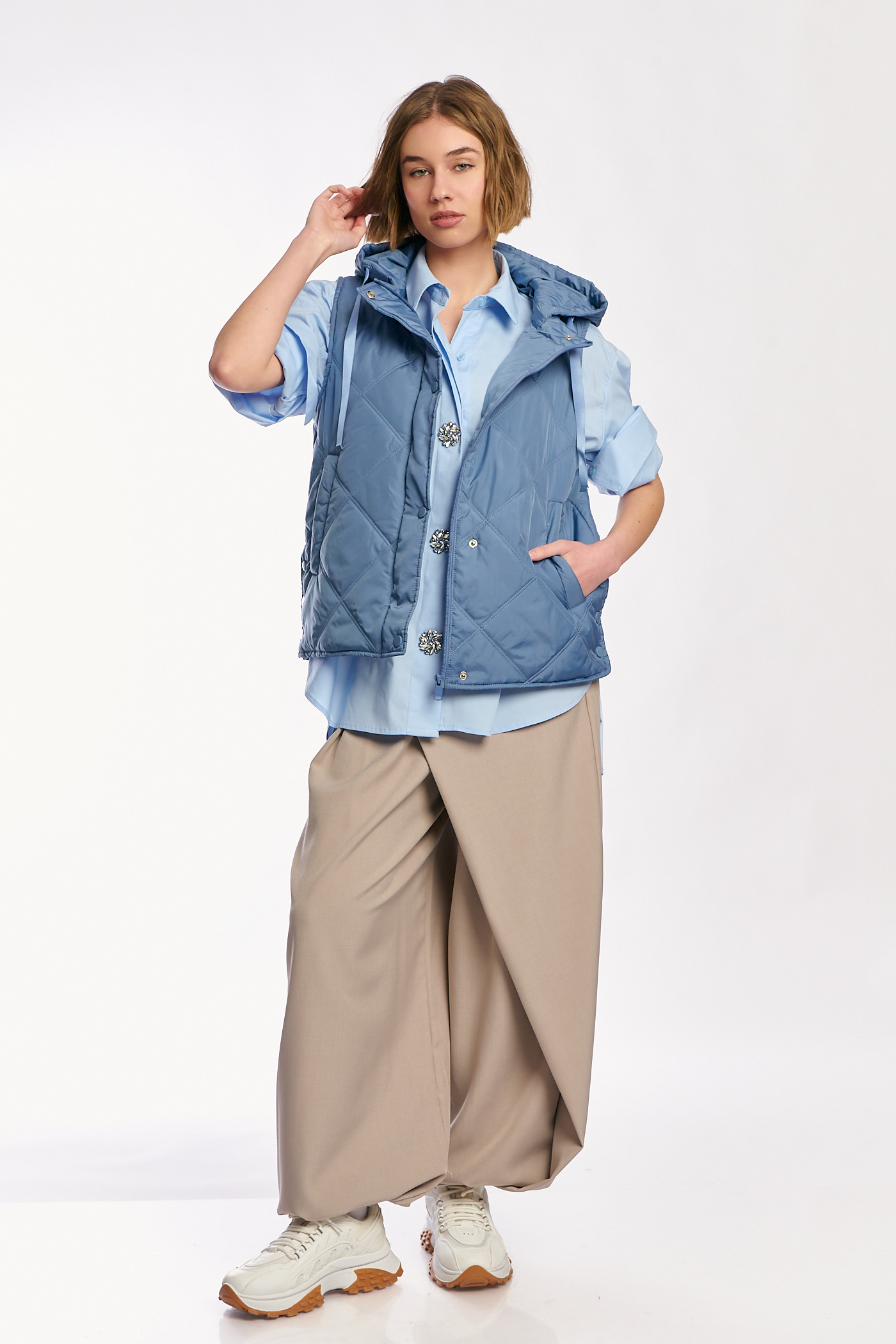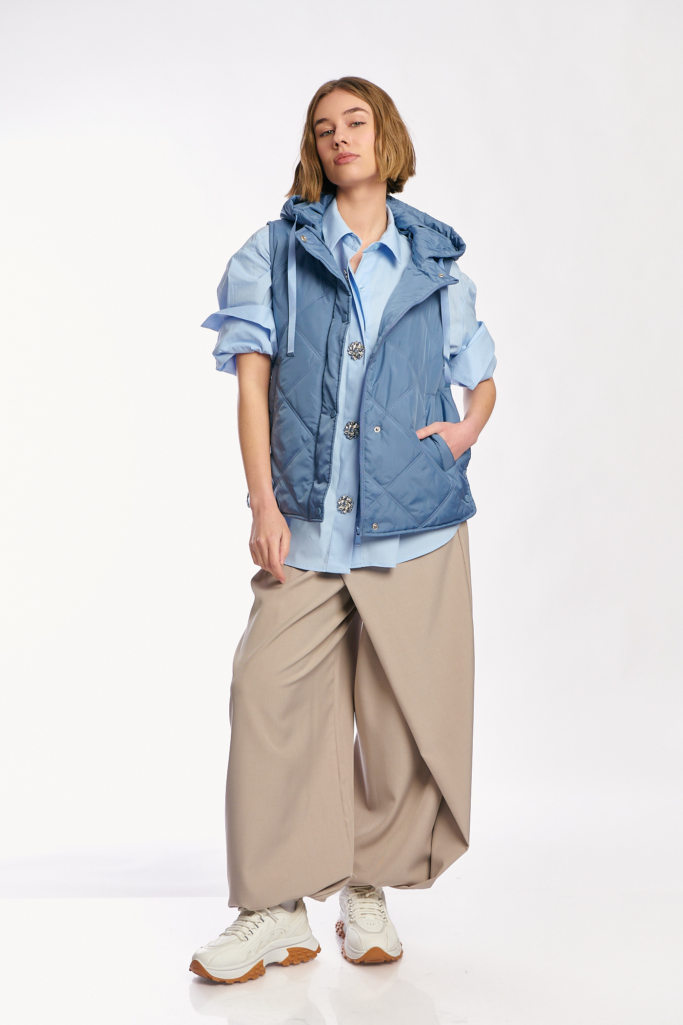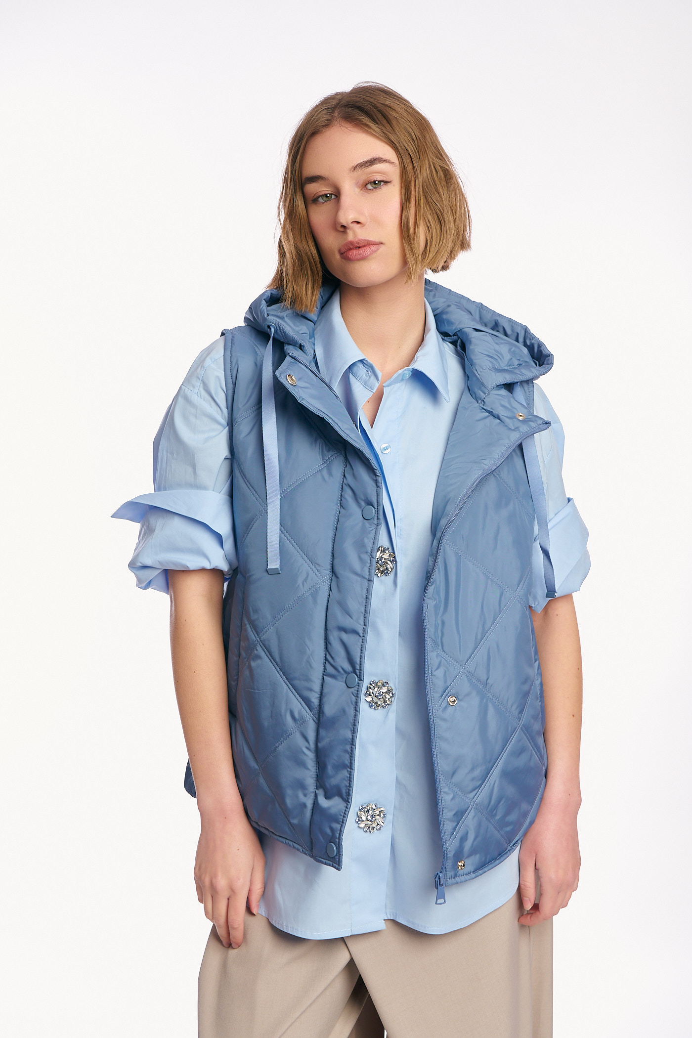 Γυναικείο Καπιτονέ Γιλέκο με Αποσπώμενη Κουκούλα και Ρομβοειδή Ραφή σε Μπλε-A26350
