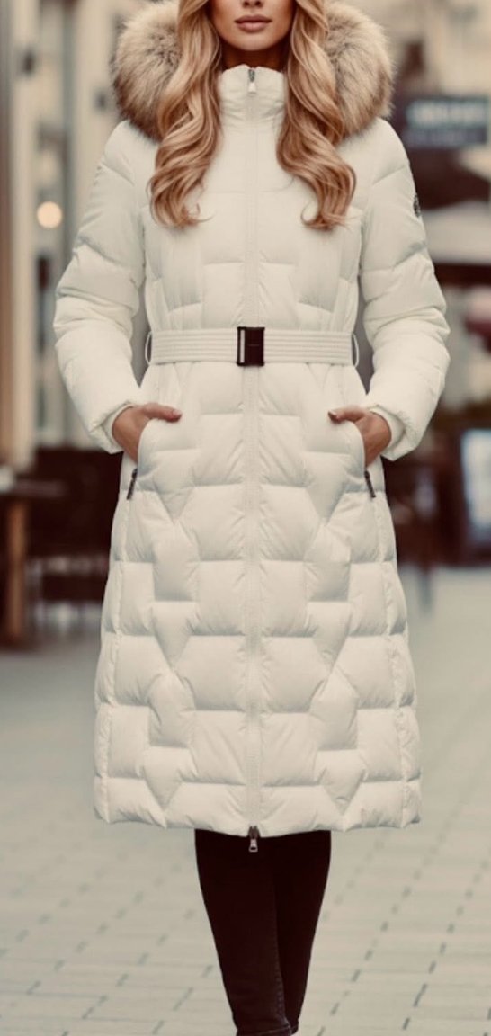Ένα εντυπωσιακό και εξαιρετικά ζεστό μακρύ Puffer μπουφάν σε φωτεινό λευκό χρώμα. Η στενή, θηλυκή γραμμή του κολακεύει τη σιλουέτα, ενώ προσφέρει μέγιστη προστασία από το κρύο.