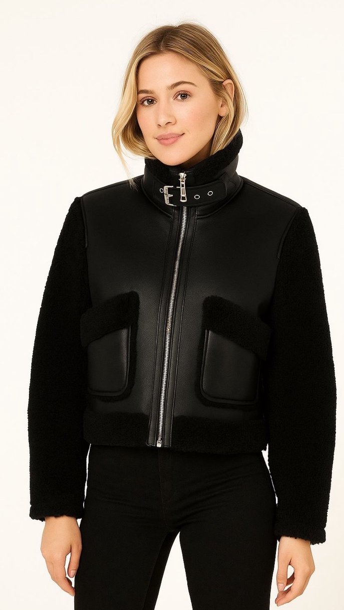 Cropped Μπουφάν Διπλής Όψης με Sherpa & Δερματίνη-4395