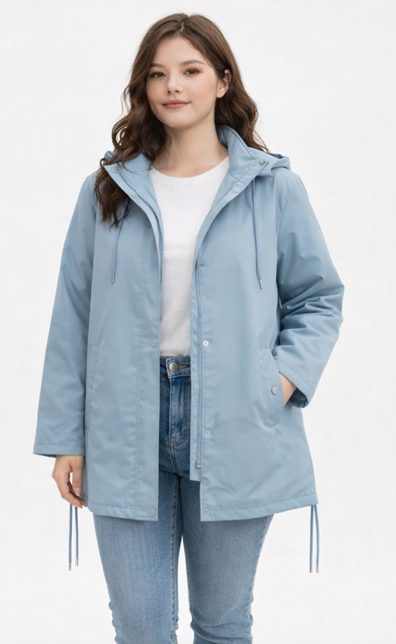 Γυναικείο Αντιανεμικό Μπουφάν σε Σιέλ Απόχρωση με Κουκούλα και Ρυθμιζόμενο Κορδόνι-A26357