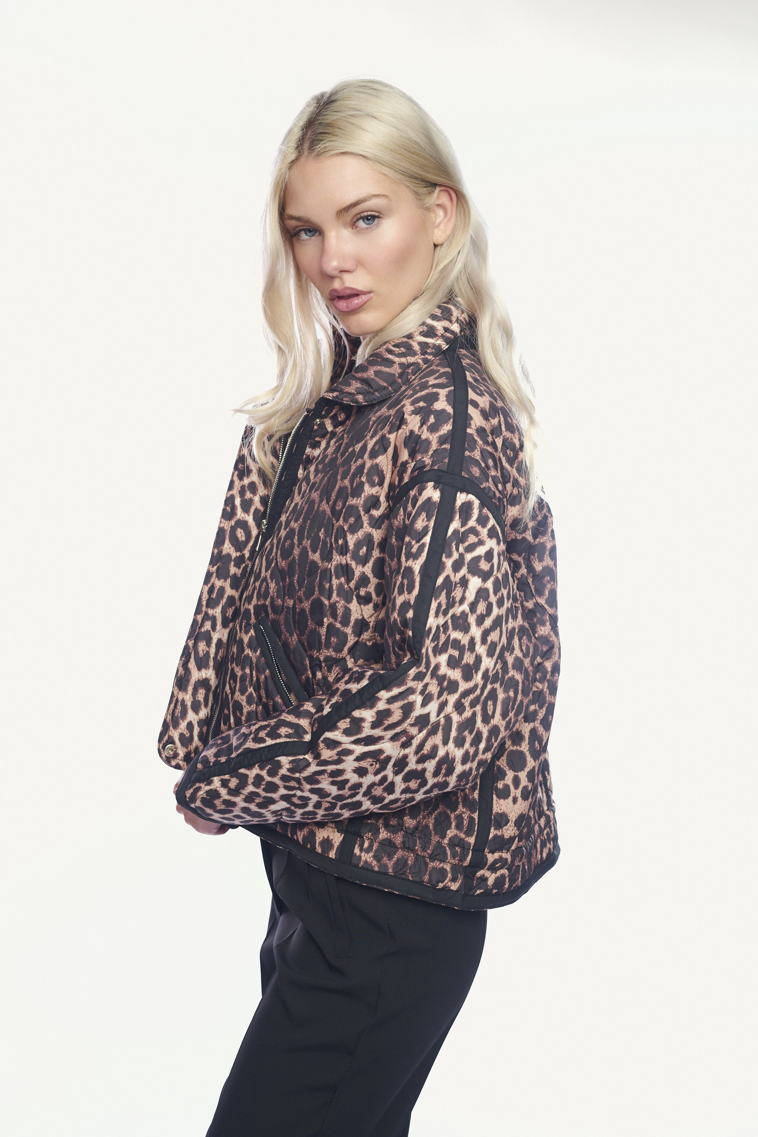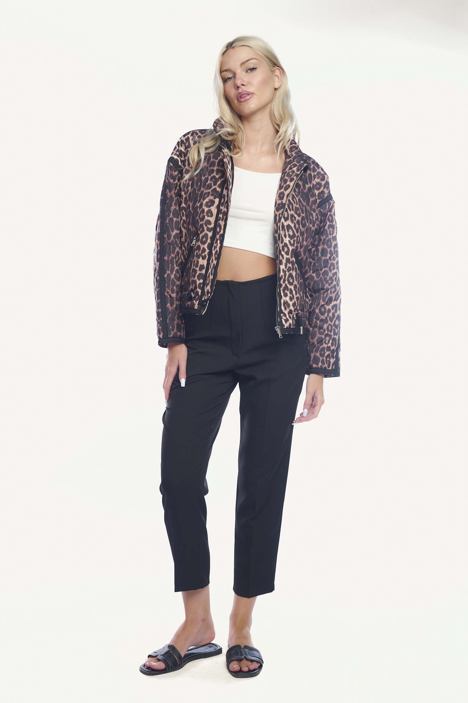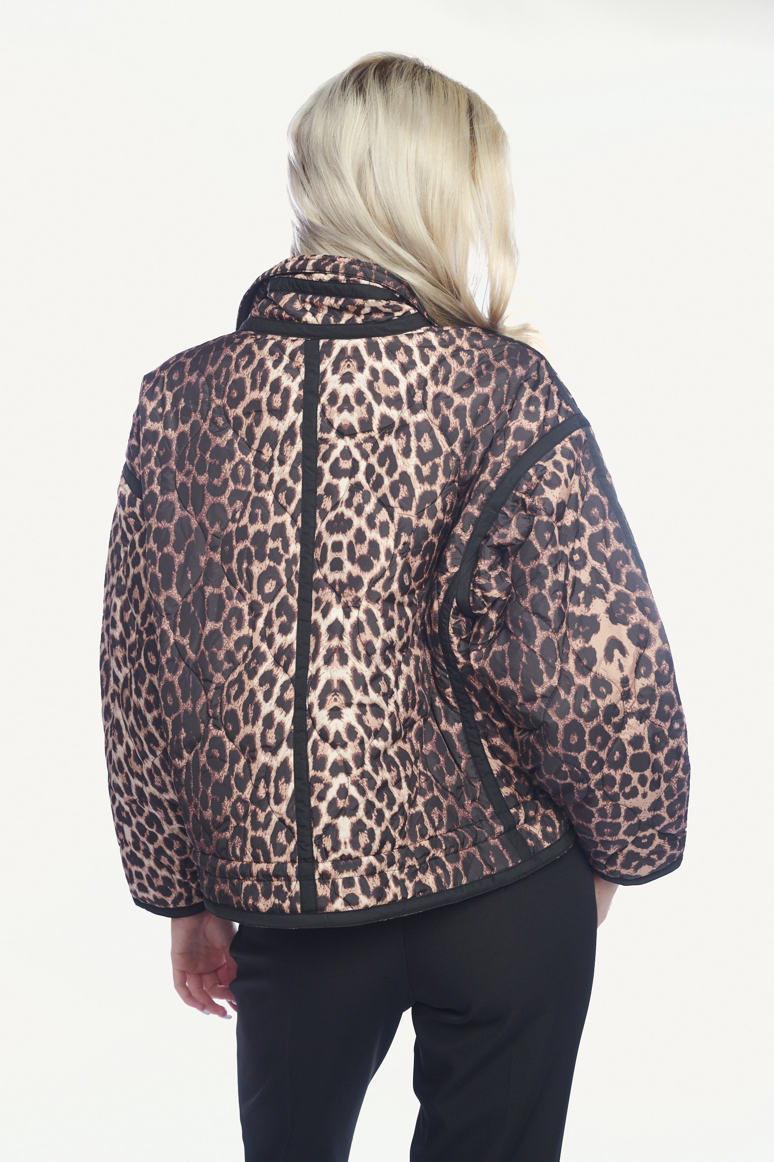 Κοντό καπιτονέ μπουφάν με λεοπάρ print και μαύρες λεπτομέρειες-926