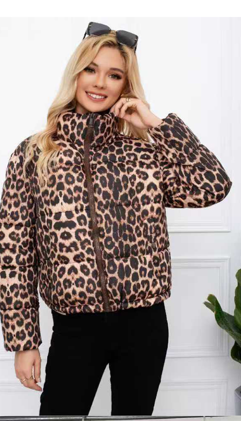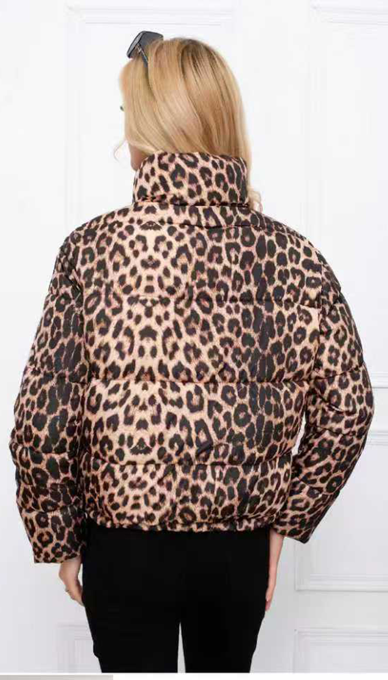 Κοντό puffer μπουφάν με λεοπάρ μοτίβο-Α26293 Κοντό puffer μπουφάν με λεοπάρ μοτίβο-Α26293