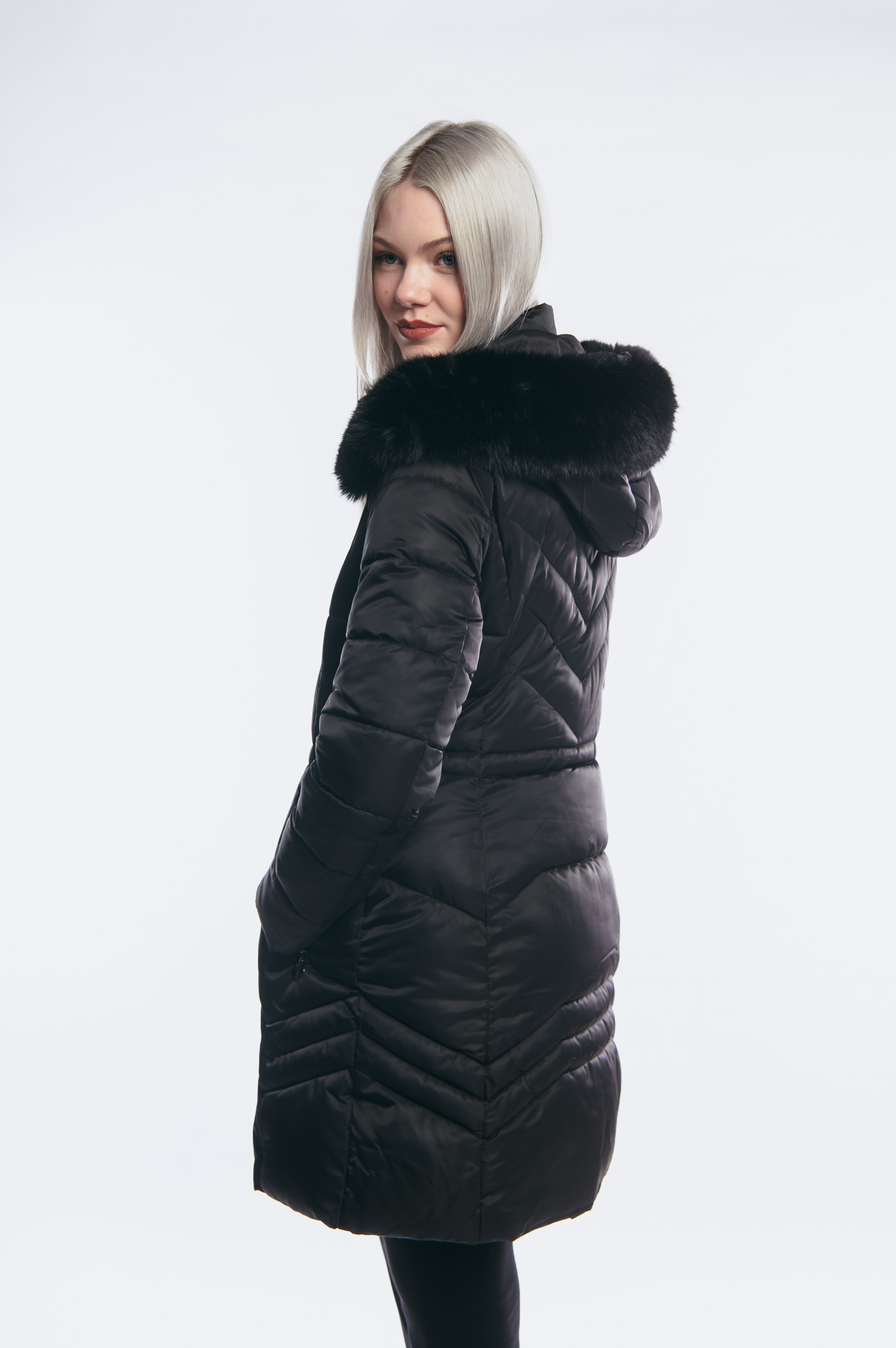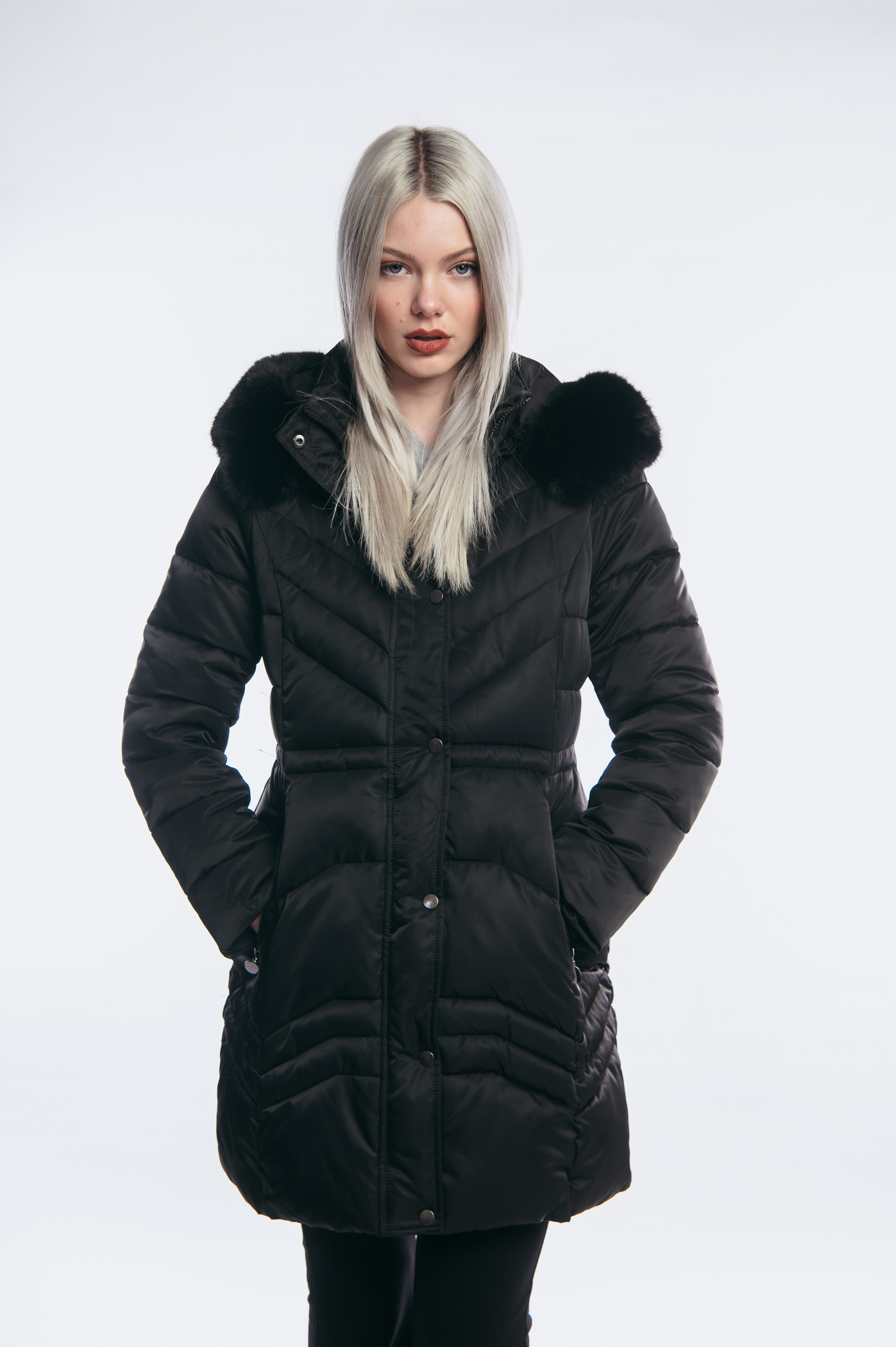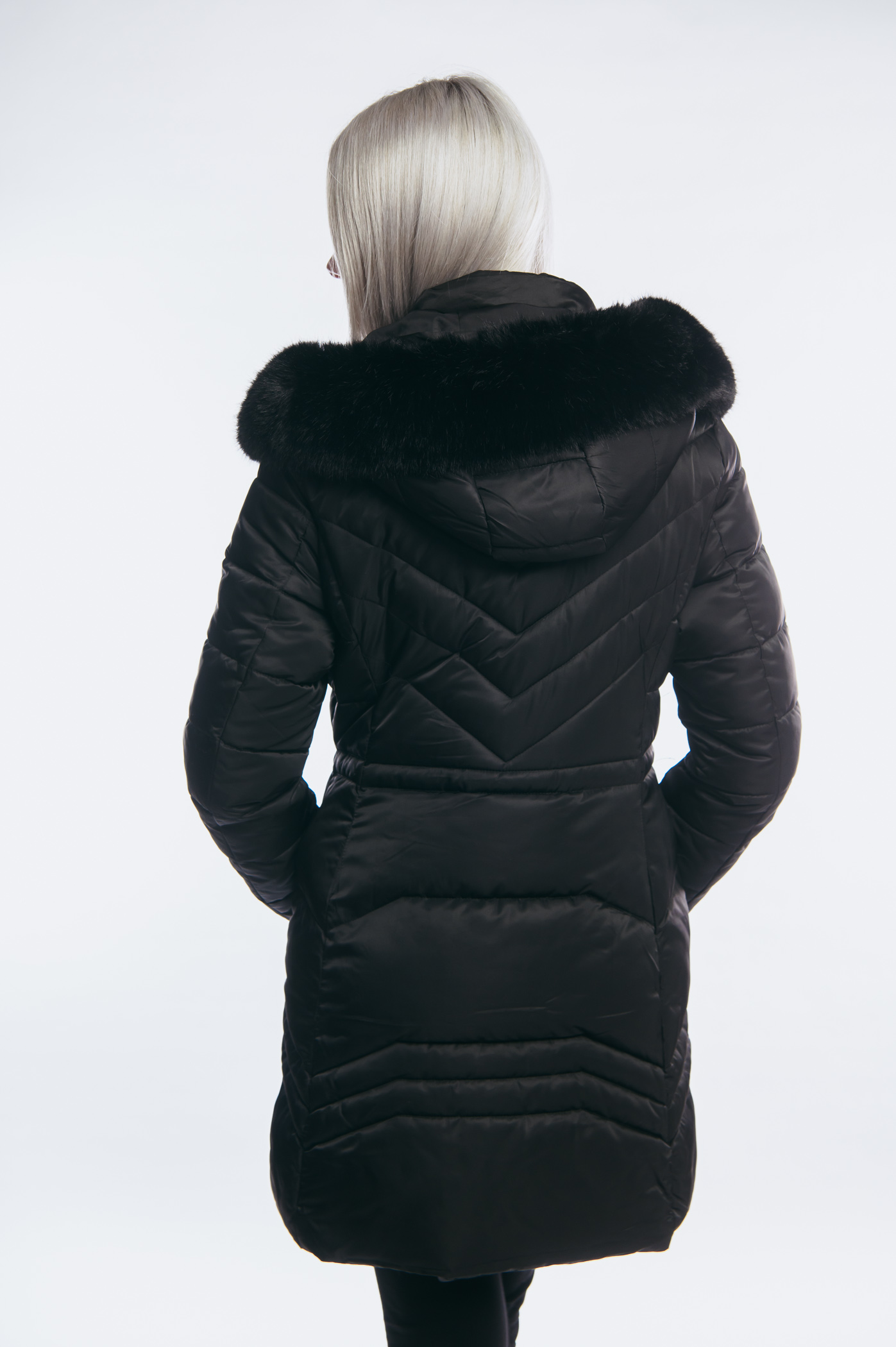 Μαύρο μακρύ γυναικείο καπιτονέ παλτό μπουφάν χειμωνιάτικο με κουκούλα