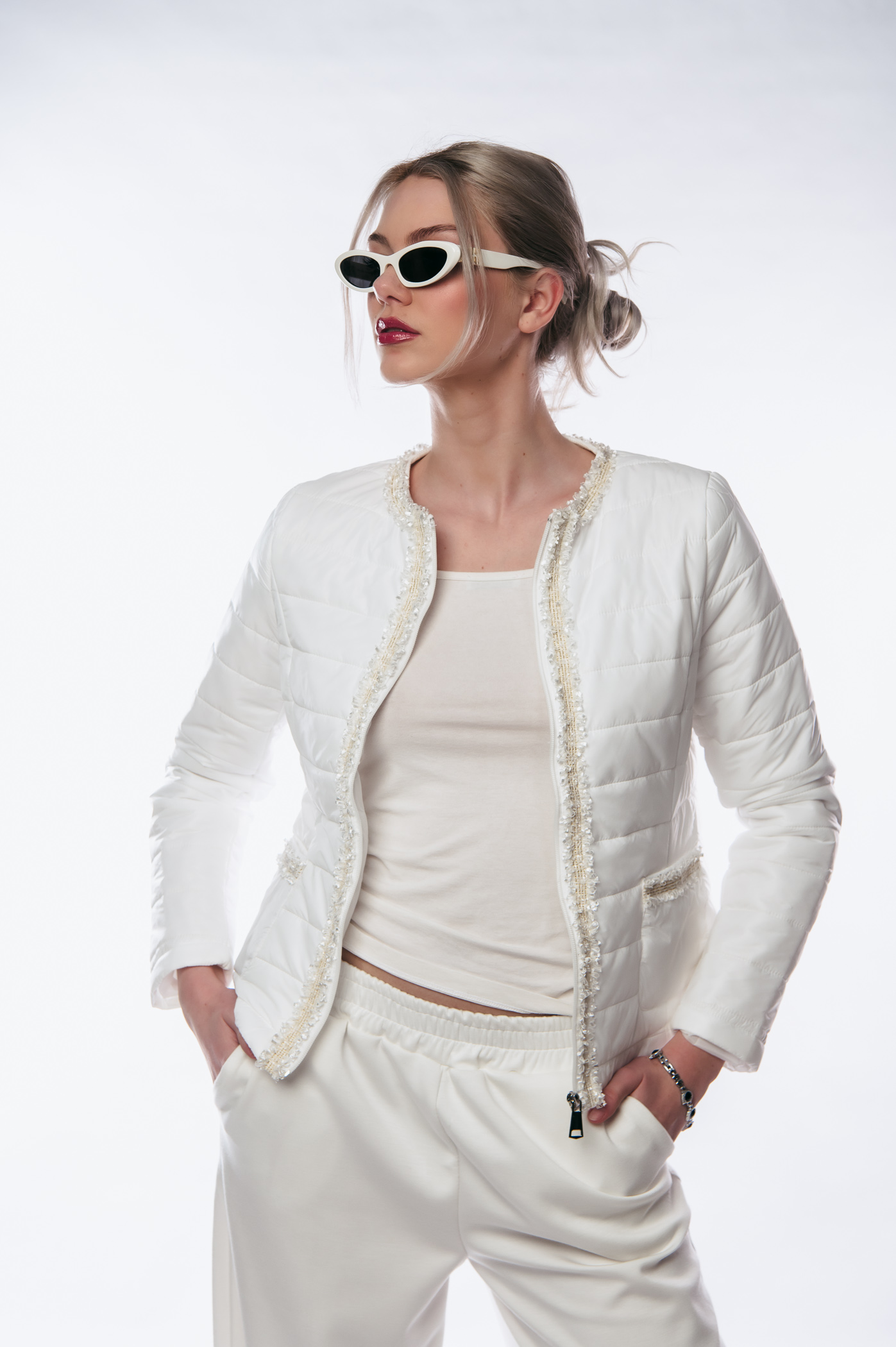 Δανείζοντας την κλασική αισθητική του οίκου Chanel στη σύγχρονη γκαρνταρόμπα, αυτό το κοντό μαύρο ή λευκό μπουφάν αποτελεί έναν ορισμό της διαχρονικής κομψότητας, διακρινόμενο για την καθαρή του γραμμή και τις πρακτικές εξωτερικές τσέπες που προσθέτουν δομή στο μπροστινό μέρος. Η σχεδίασή του εστιάζει στη θηλυκότητα χωρίς να θυσιάζει τη λειτουργικότητα, καθώς το κλείσιμο με φερμουάρ προσφέρει μια πιο μοντέρνα πινελιά σε σχέση με τα παραδοσιακά κουμπιά, καθιστώντας το ιδανικό τόσο για επίσημες εμφανίσεις όσο και για να αναβαθμίσετε ένα απλό look με τζιν. Με την υπογραφή της Ifos Fashion, αυτό το κομμάτι είναι κατασκευασμένο για να προσφέρει άνεση και στυλ που ξεχωρίζει, αποτελώντας ένα απαραίτητο πανωφόρι για τις μεταβατικές εποχές που απαιτούν προσεγμένη εμφάνιση σε κάθε λεπτομέρεια.