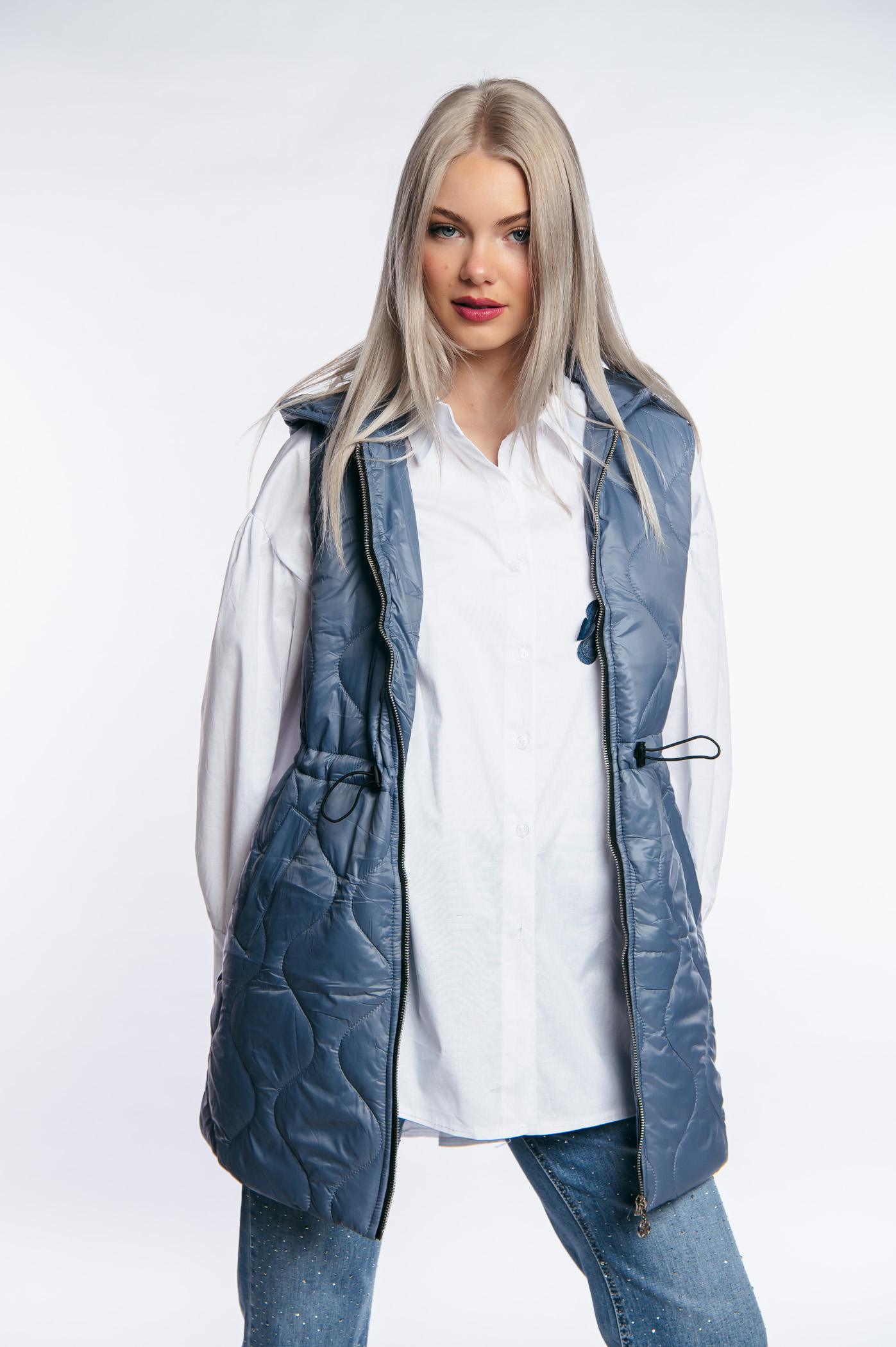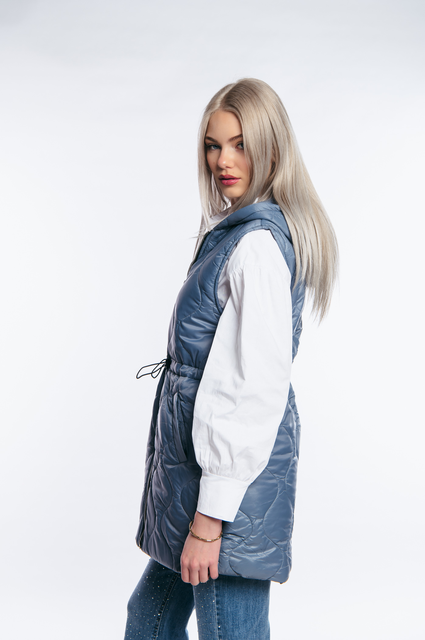 Αμάνικο μπουφάν τζάκετ με διακοσμητικά γαζιά,ρυθμιζόμενο λάστιχο και τσέπες.