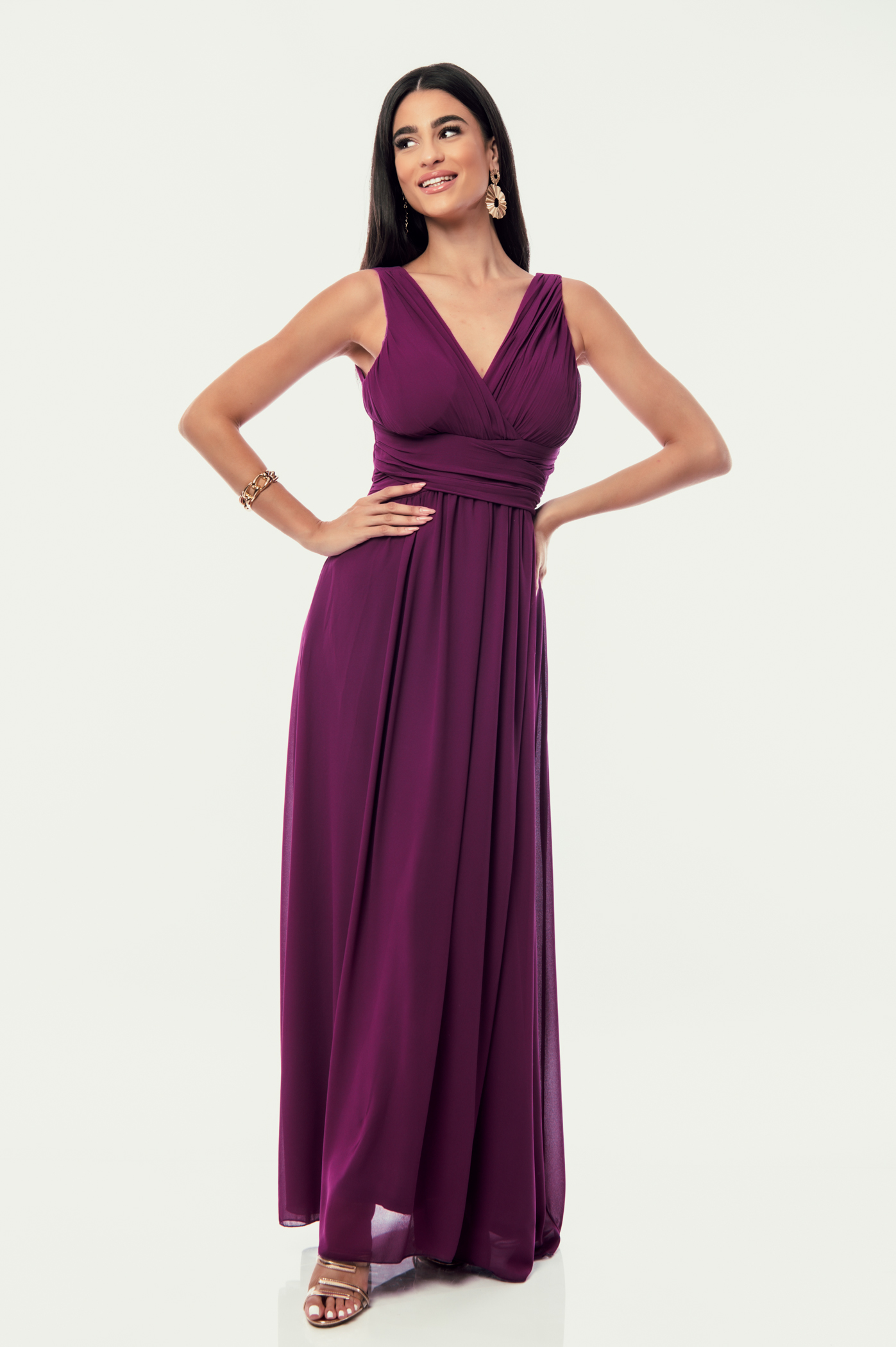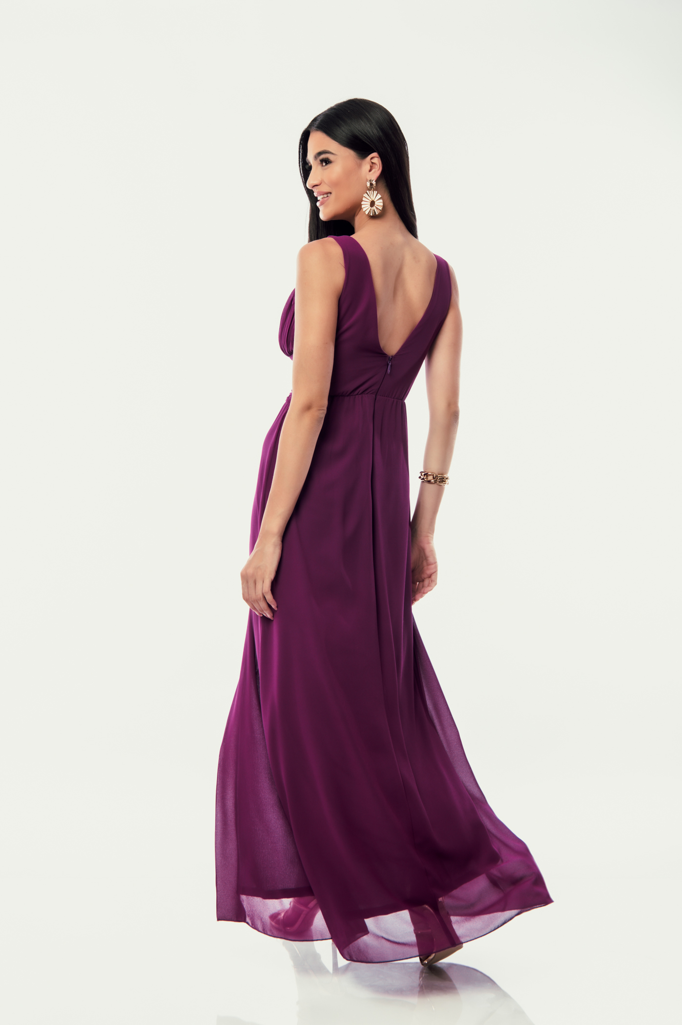 Φόρεμα maxi αμπιγιέ με σκίσιμο στην μία πλευρά,με ve πλισέ στο πάνω μέρος και ve με φερμουάρ στο πίσω.