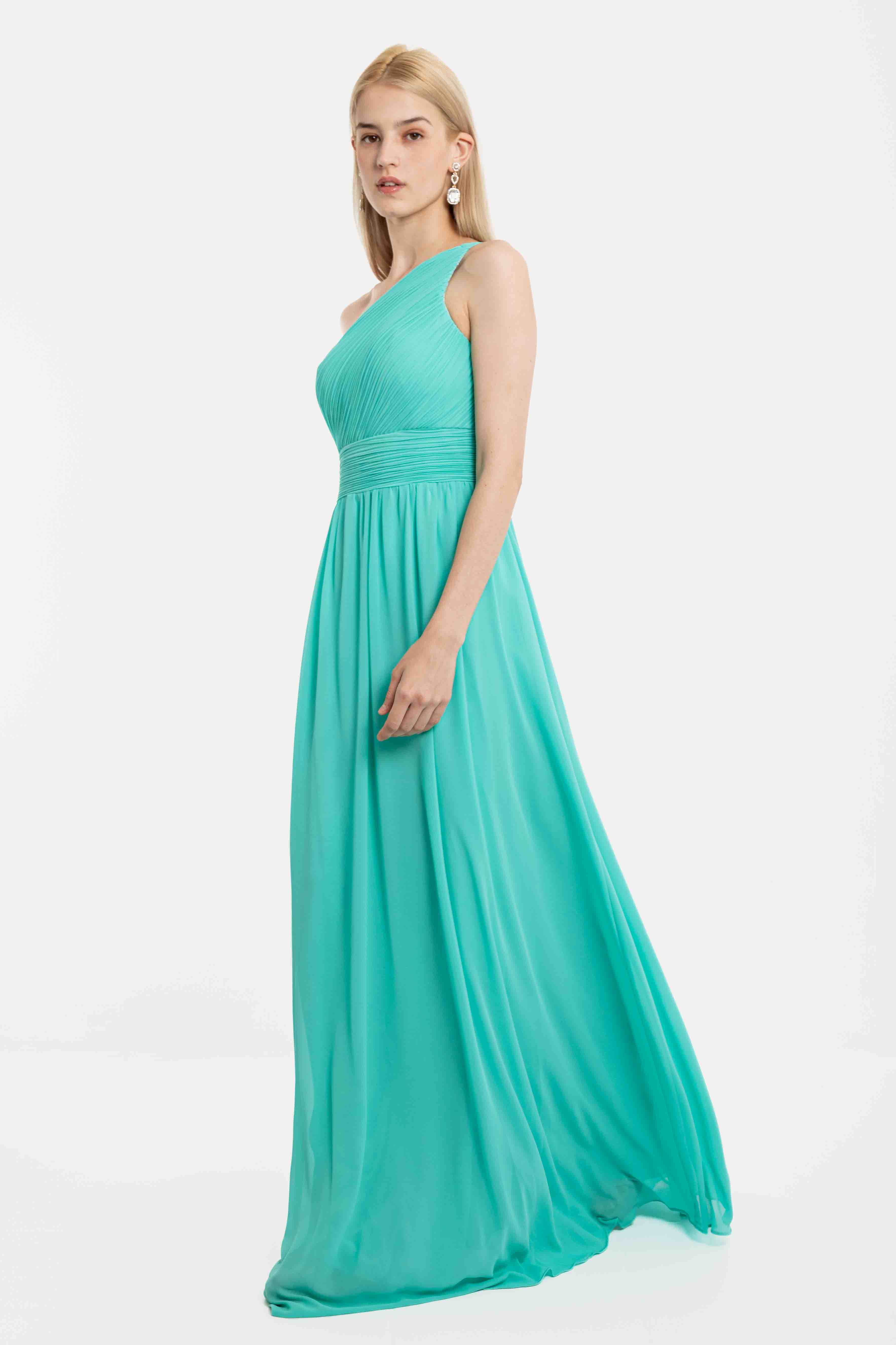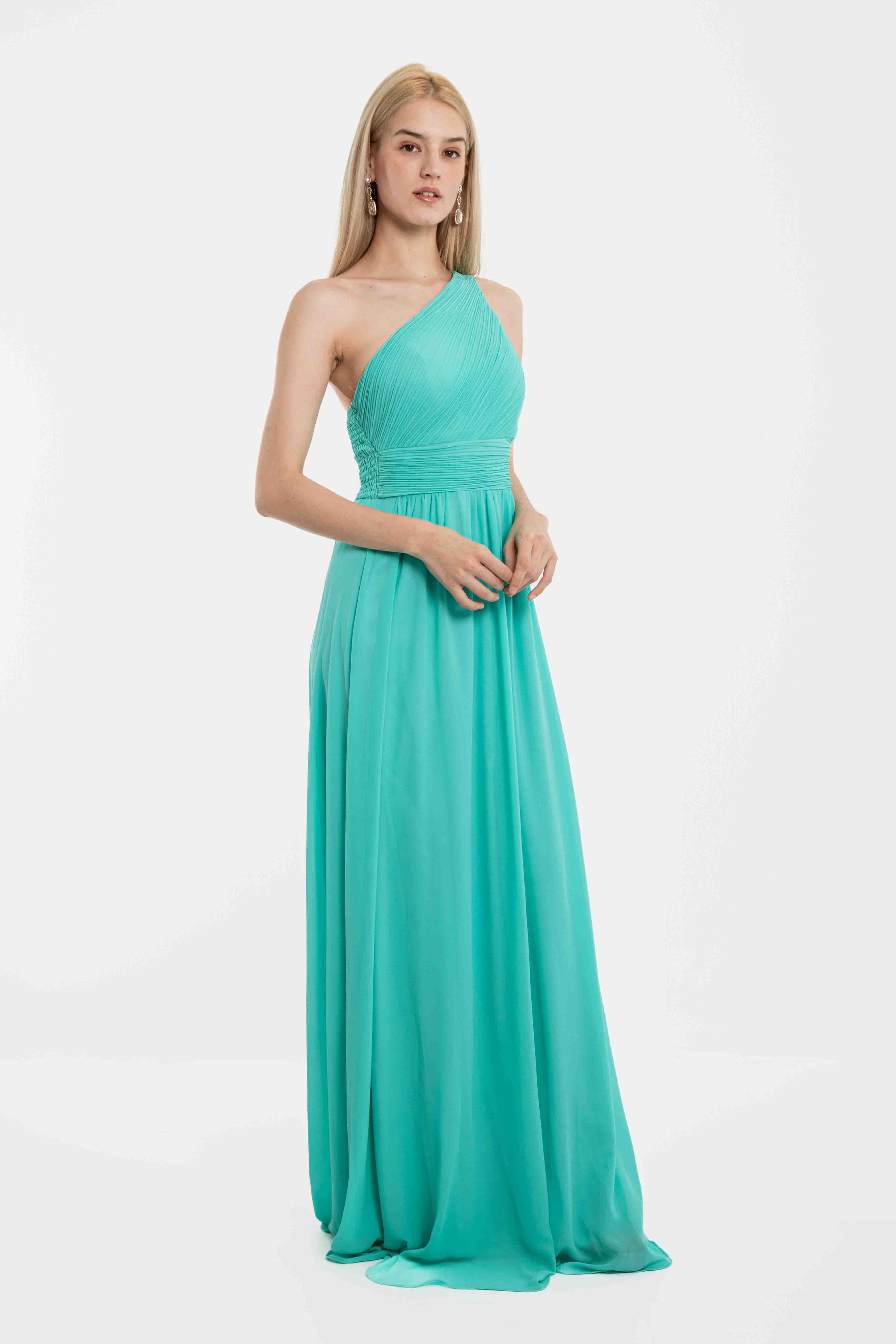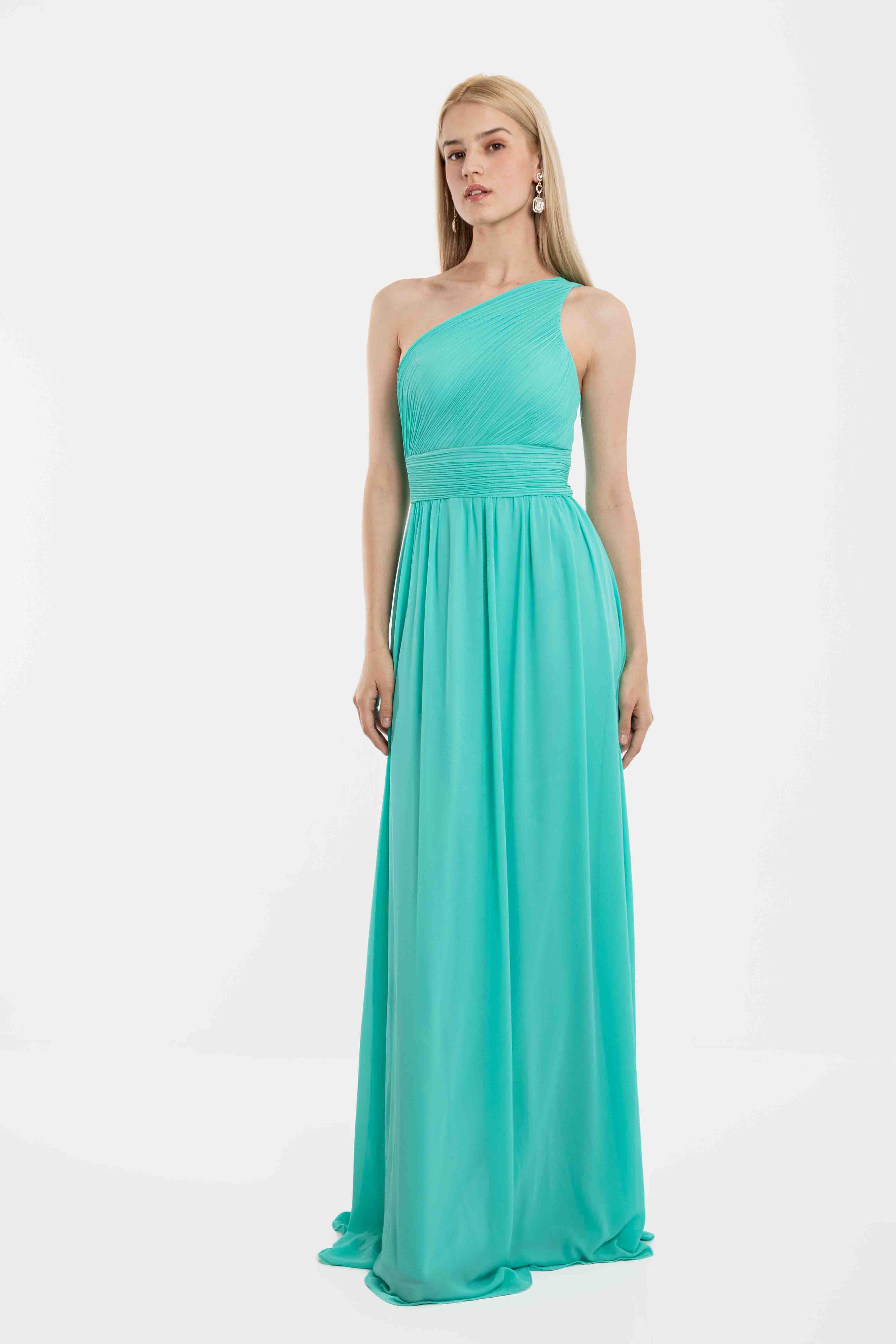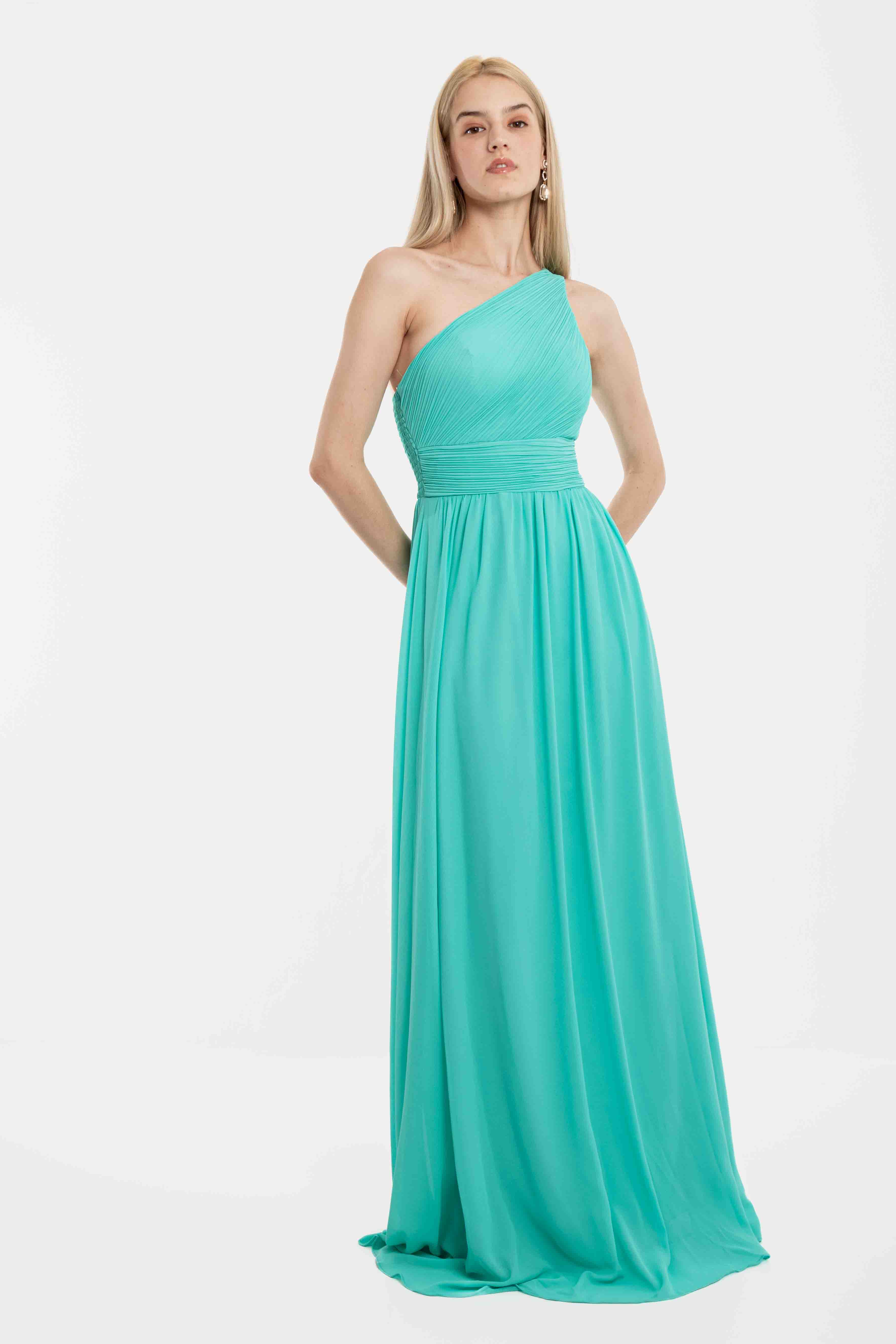Φόρεμα αμπιγιέ με έναν ώμο,πλισέ στο πάνω μέρος και σφιγκοφωλιά στο πίσω.