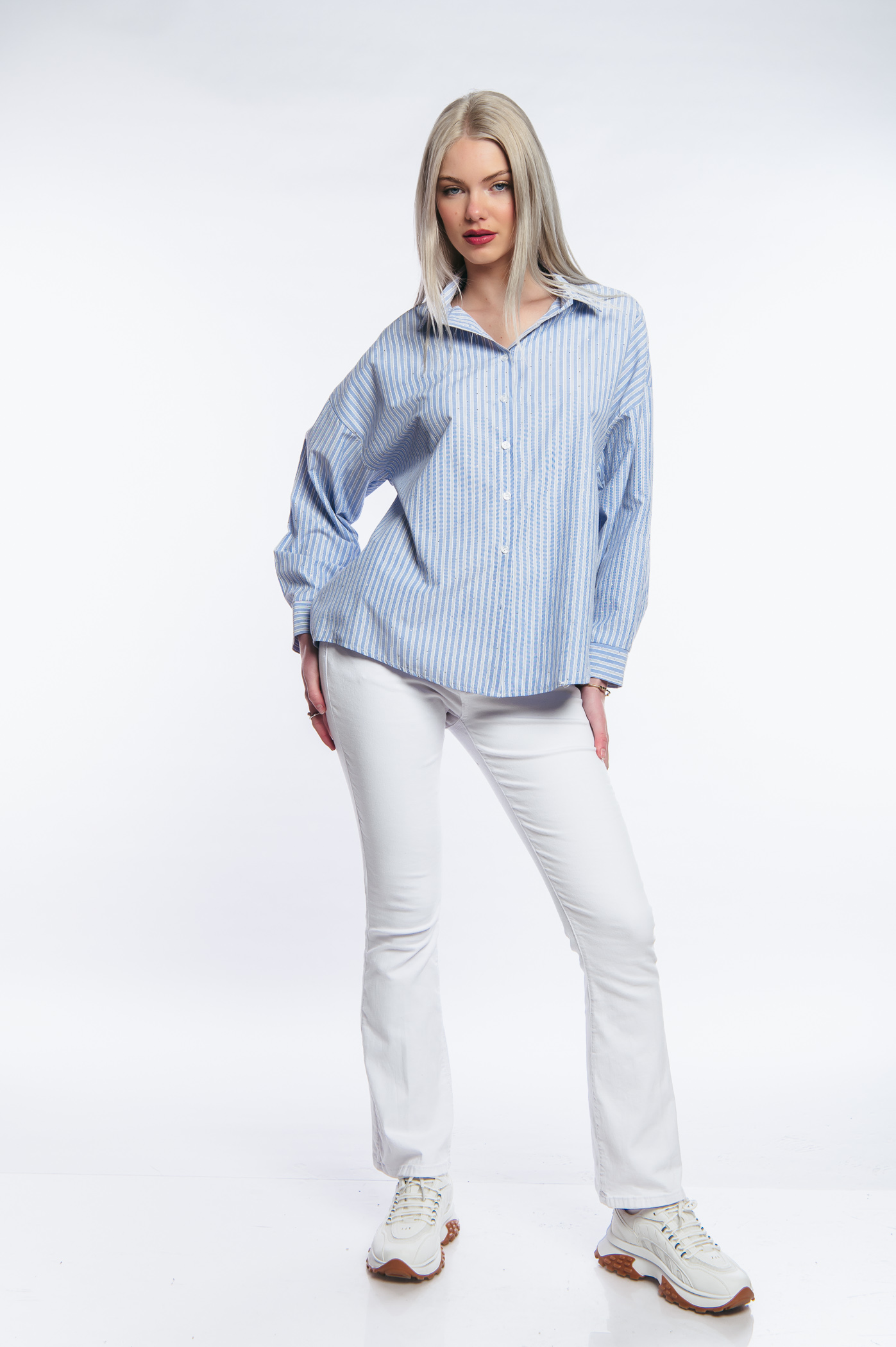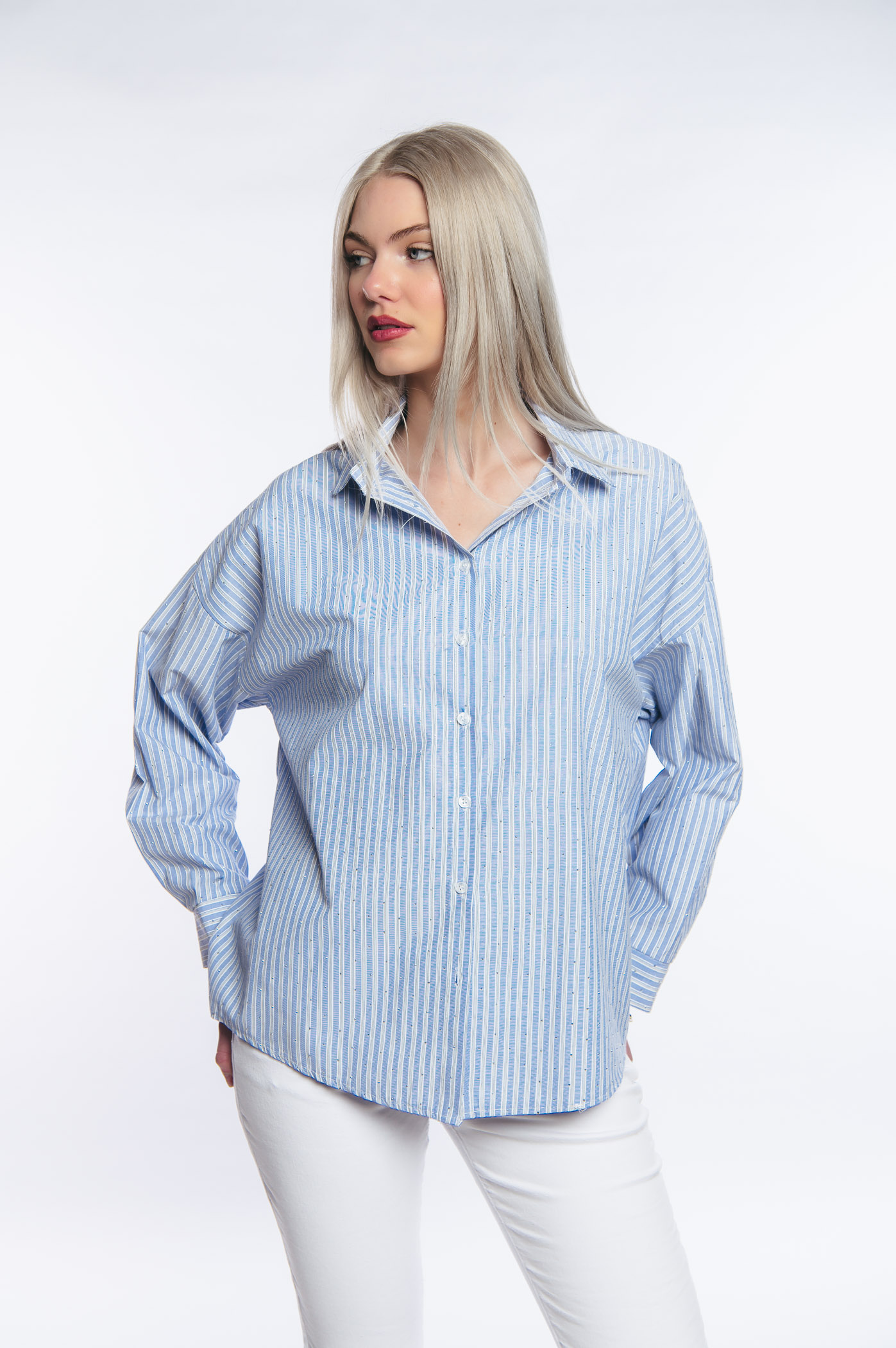 Πουκάμισο ριγέ με διακοσμητικά μεταλάκια all over.