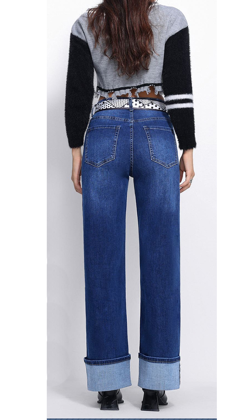 Σκούρο μπλε ψηλόμεσο τζιν καμπάνα γραμμή και ρεβέρ-1223