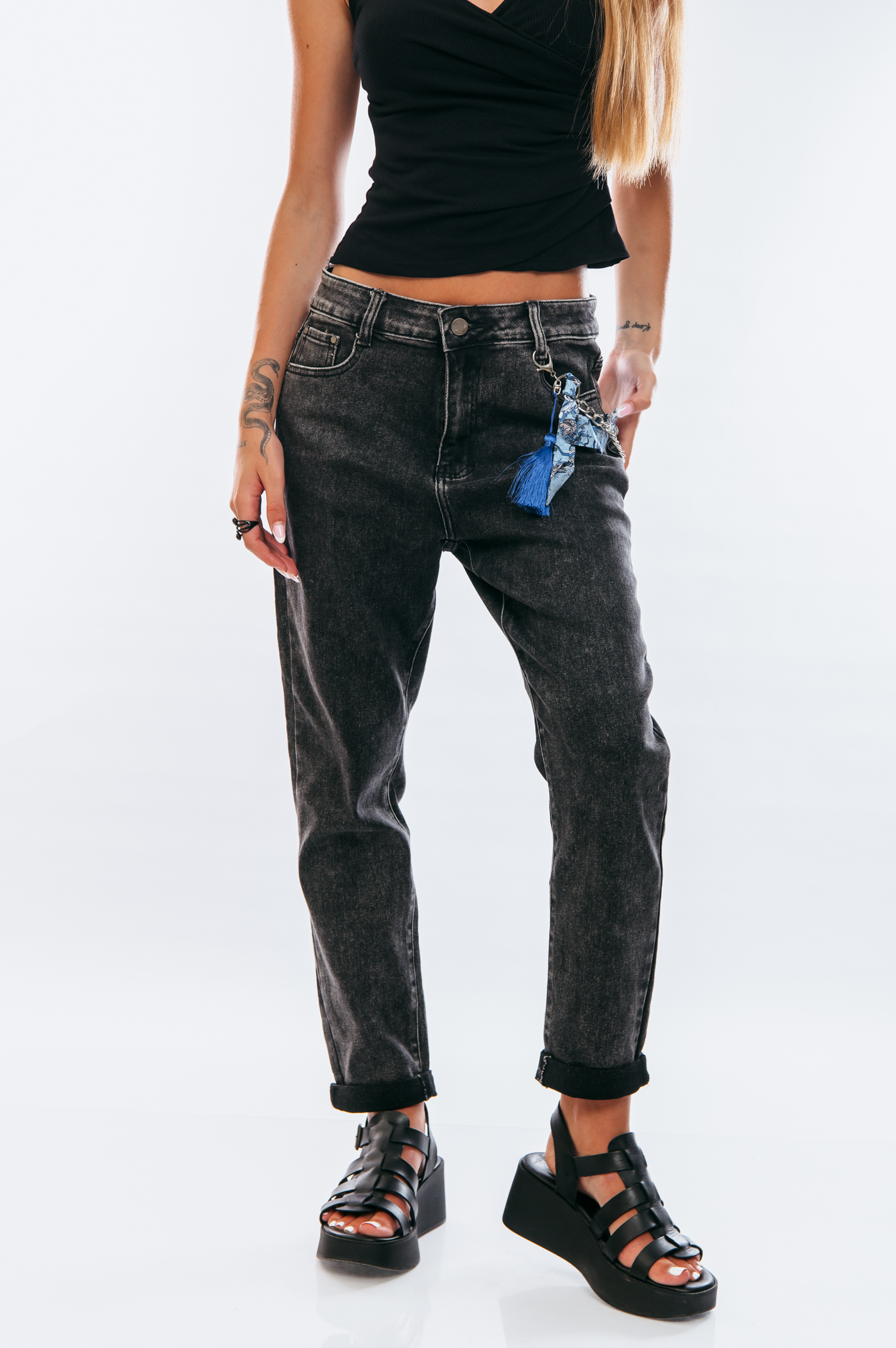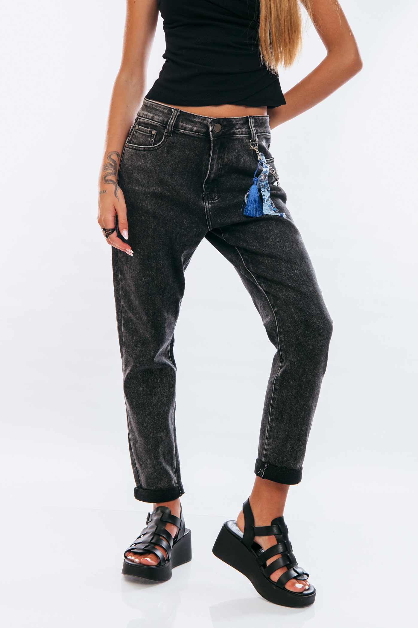 Τζιν ελαστικό με τσέπες μπρος πίσω σε άνετη γραμμή.