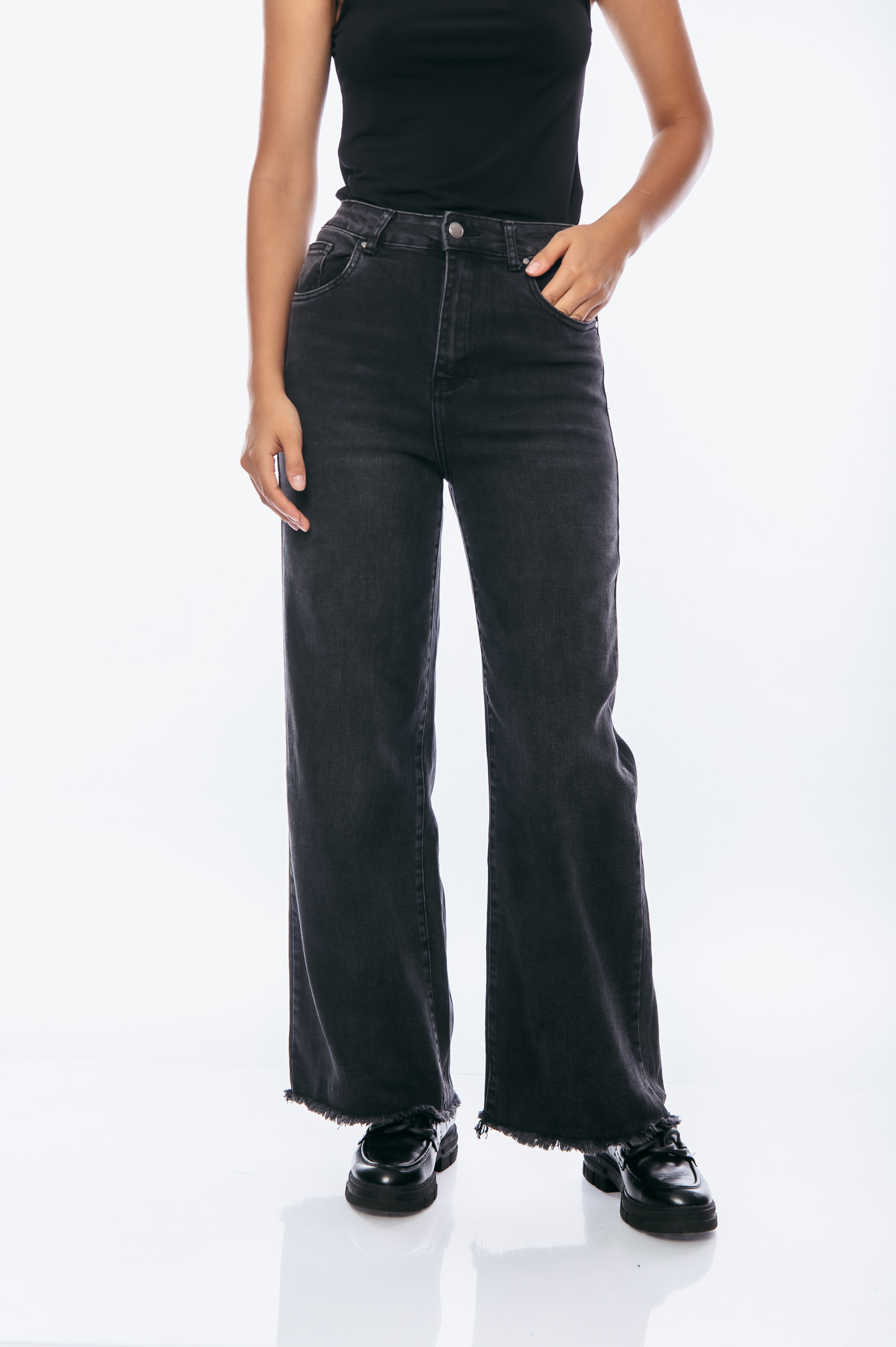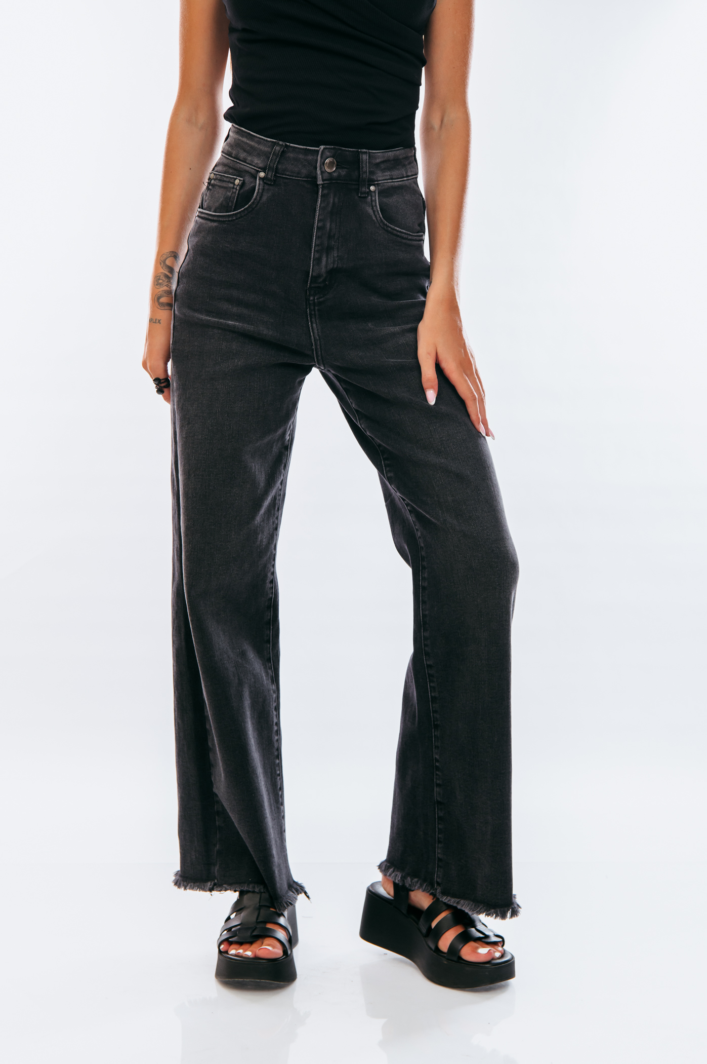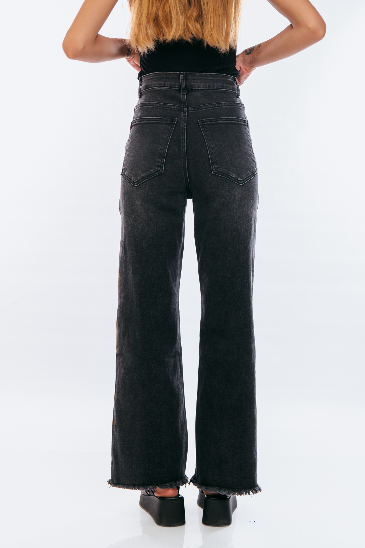 Τζιν καμπάνα ψηλόμεσο με ξέφτια στο κάτω μέρος.