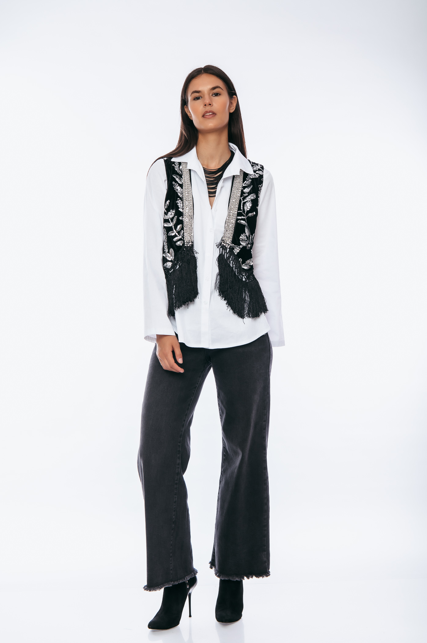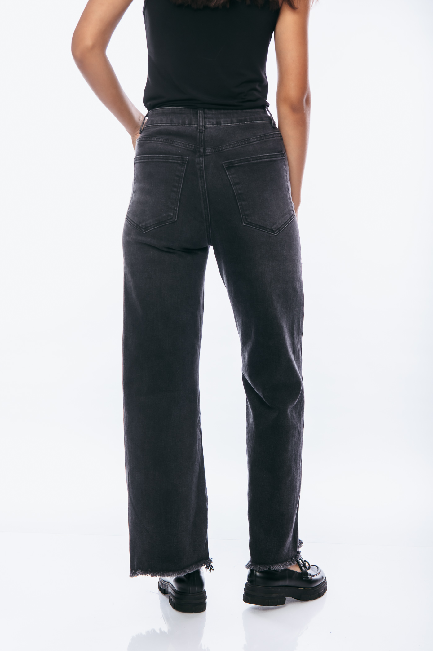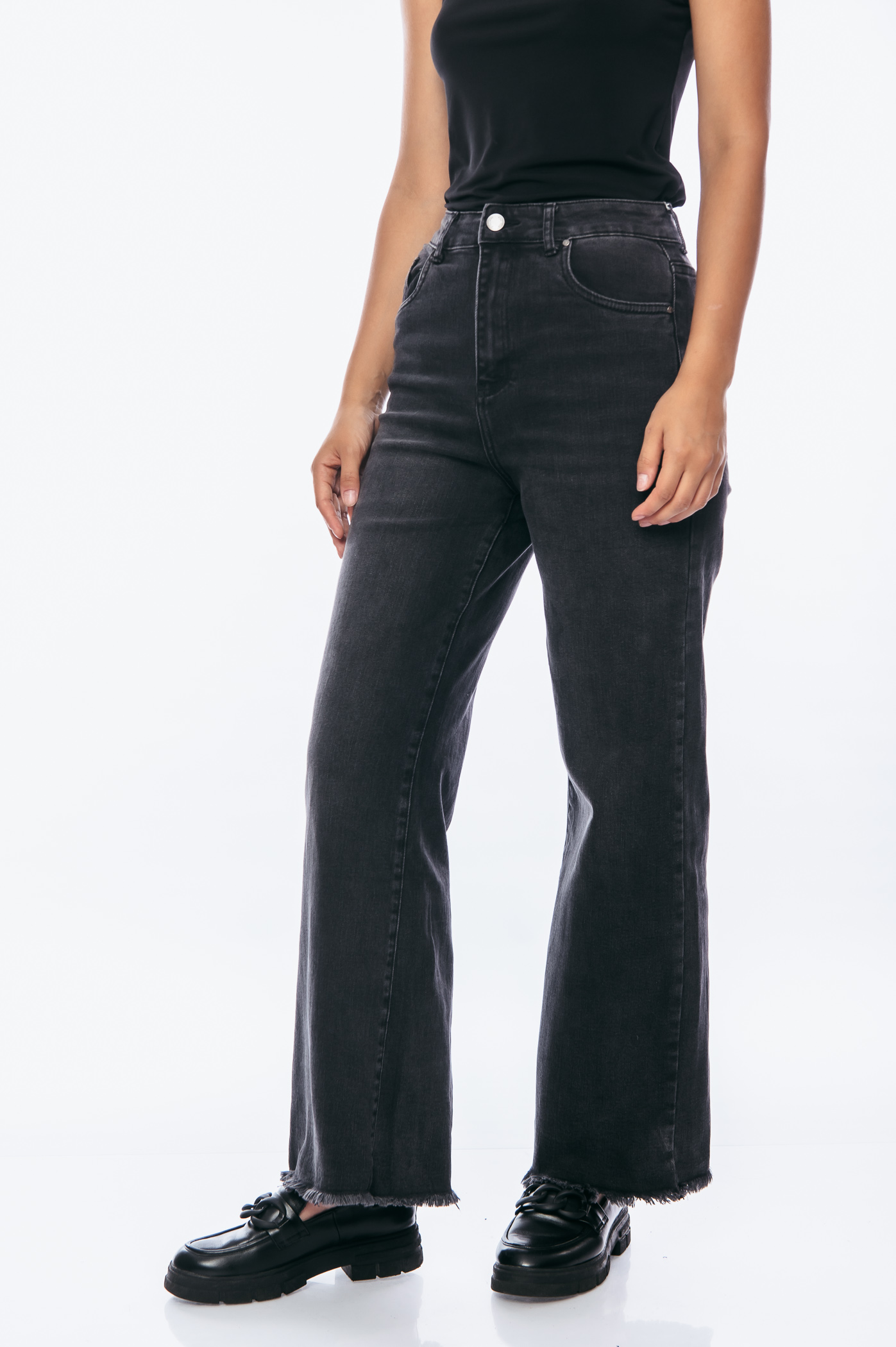 Τζιν καμπάνα ψηλόμεσο με ξέφτια στο κάτω μέρος.