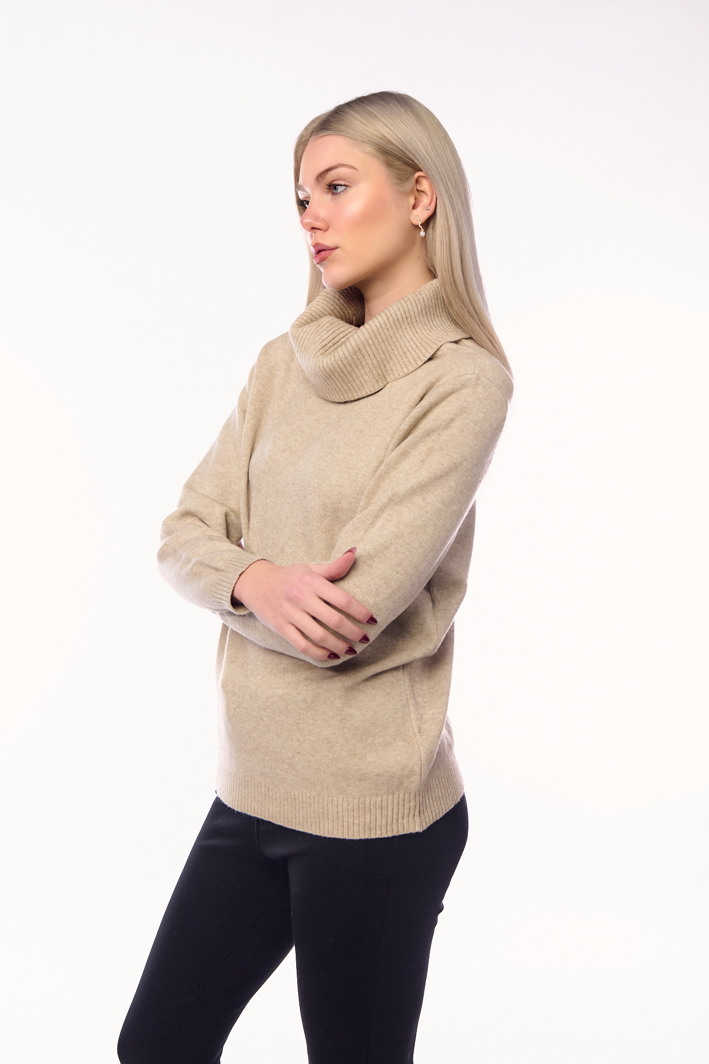 Κλασικό Πουλόβερ Ζιβάγκο σε Απαλό Χρώμα – Μπεζ-C-5616