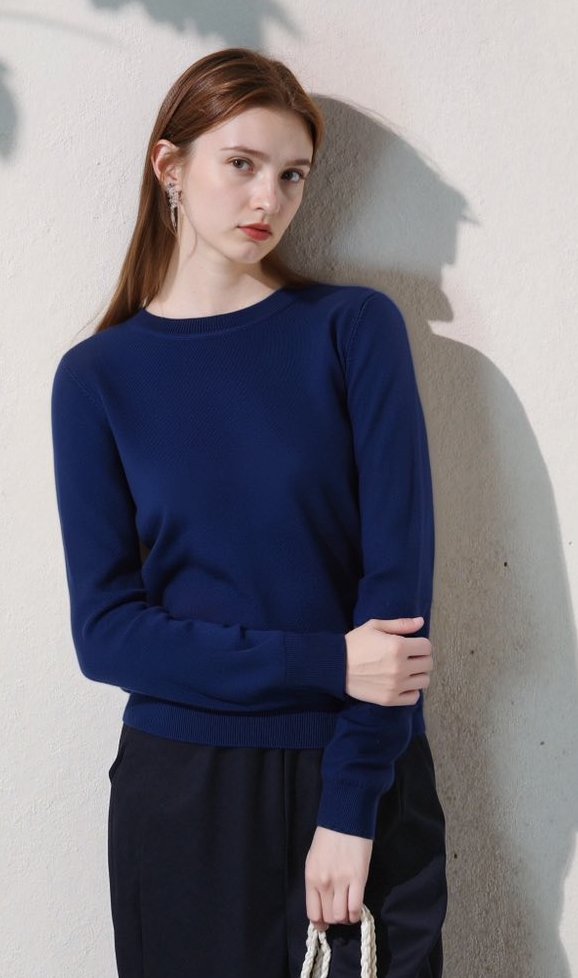 Πρόκειται για ένα κομψό και ευκολοφόρετο πουλόβερ σε έντονο και βαθύ βασιλικό μπλε/navy χρώμα, ιδανικό για layering και για casual ή office chic εμφανίσεις. Διαθέτει κλασική στρογγυλή λαιμόκοψη και ίσια, ελαφρώς εφαρμοστή γραμμή που κολακεύει το σώμα. Η πλέξη είναι λεπτή, ομοιόμορφη και υψηλής ποιότητας, ενώ το τελείωμα είναι ριμπ στις μανσέτες και το κάτω μέρος.