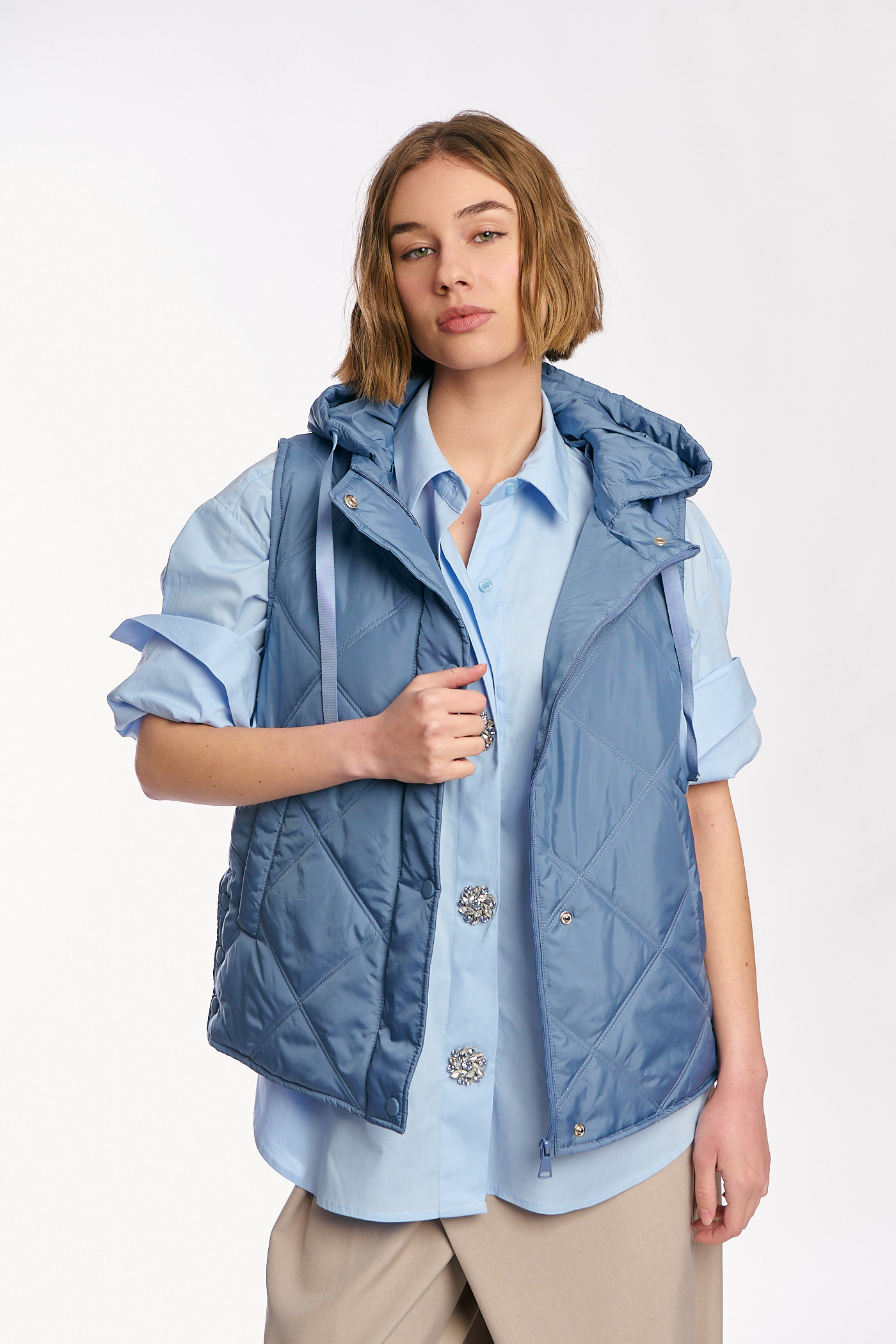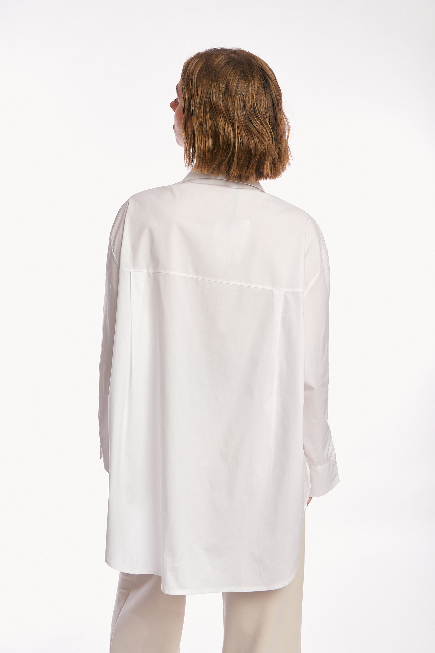 Άνετη γραμμή με κλασικό γιακά και μακριά μανίκια που καταλήγουν σε κομψές μανσέτες.
