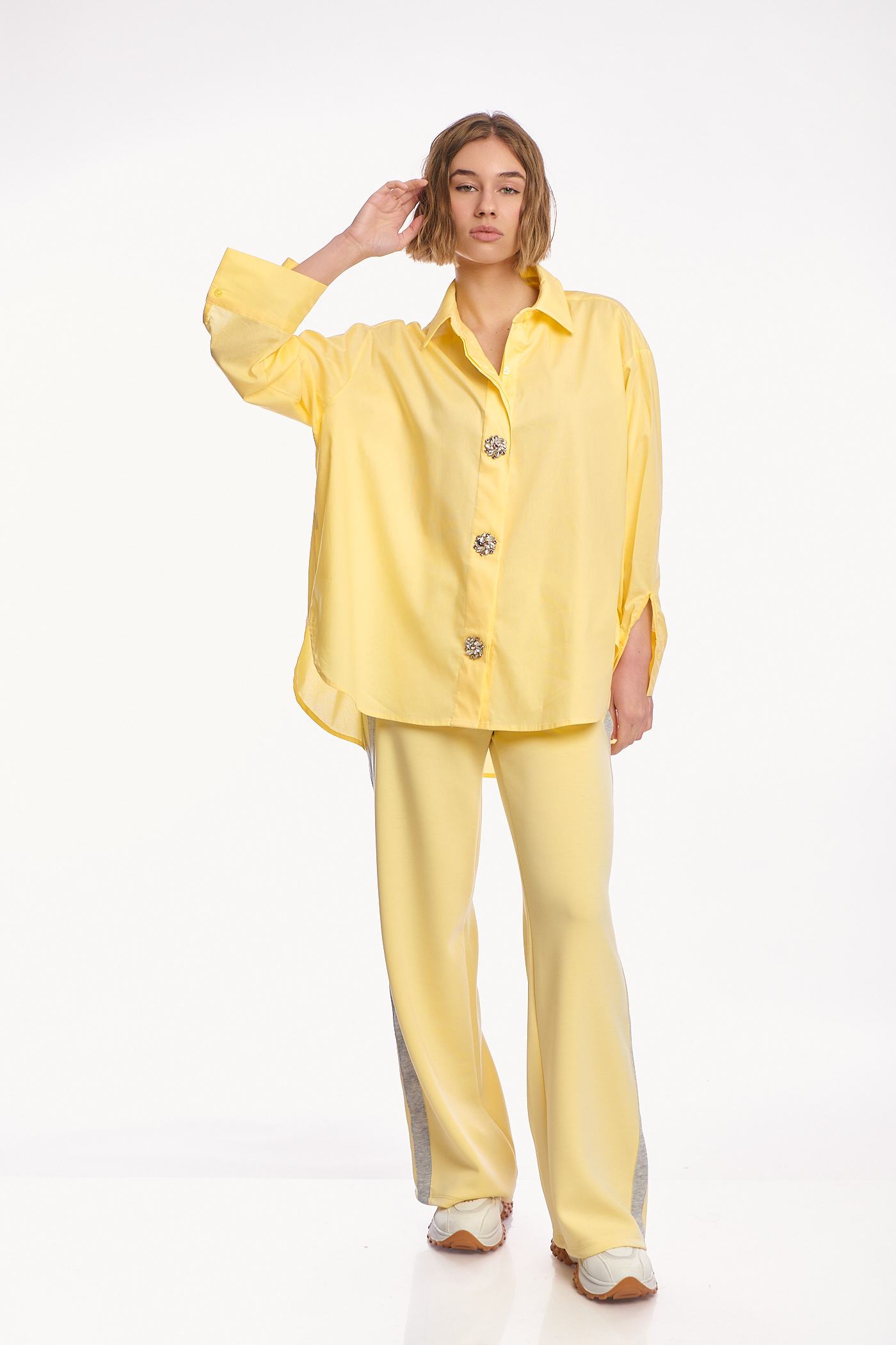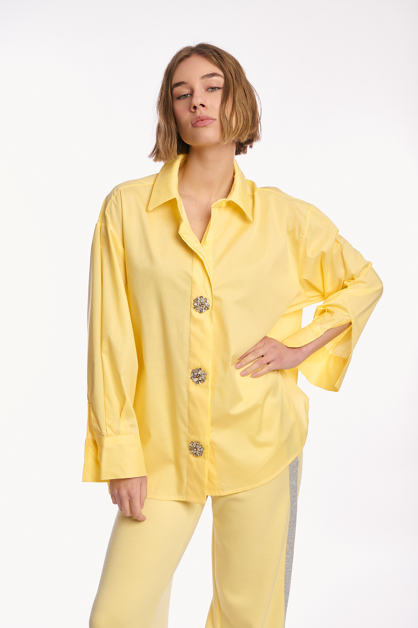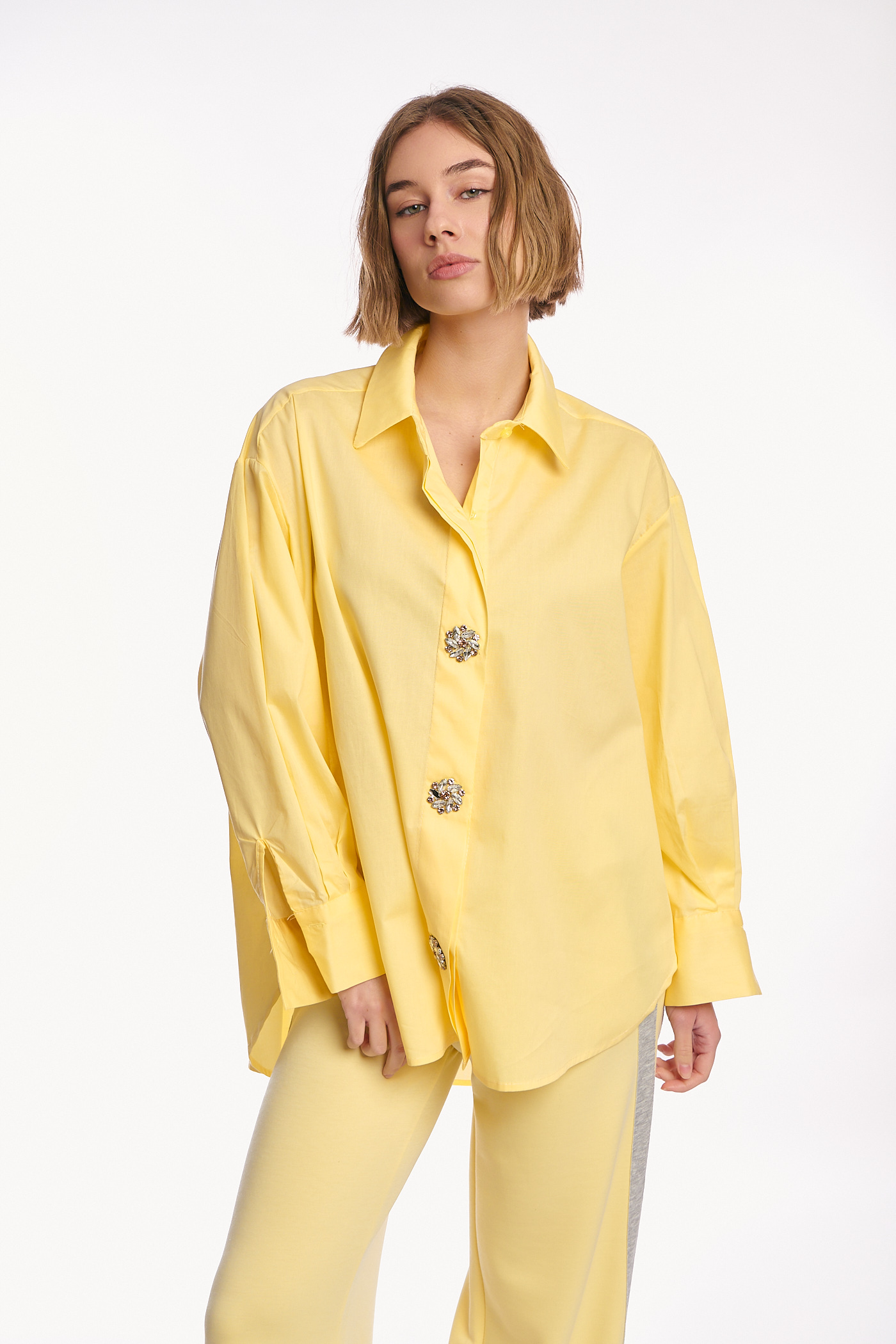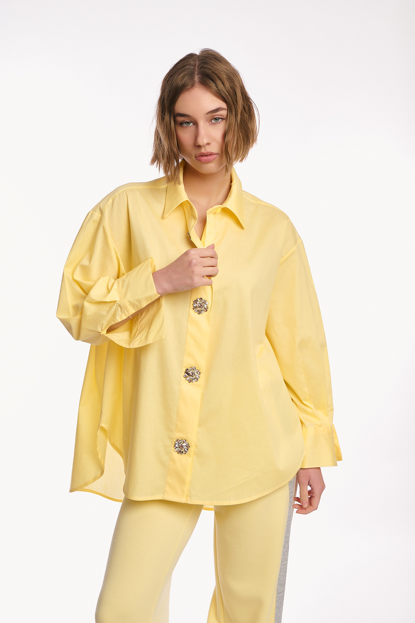 ΠΟΥΚΑΜΙΣΑ : Γυναικείο Oversized Πουκάμισο με Εντυπωσιακά Διακοσμητικά Κουμπιά-Κοσμήματα-4459