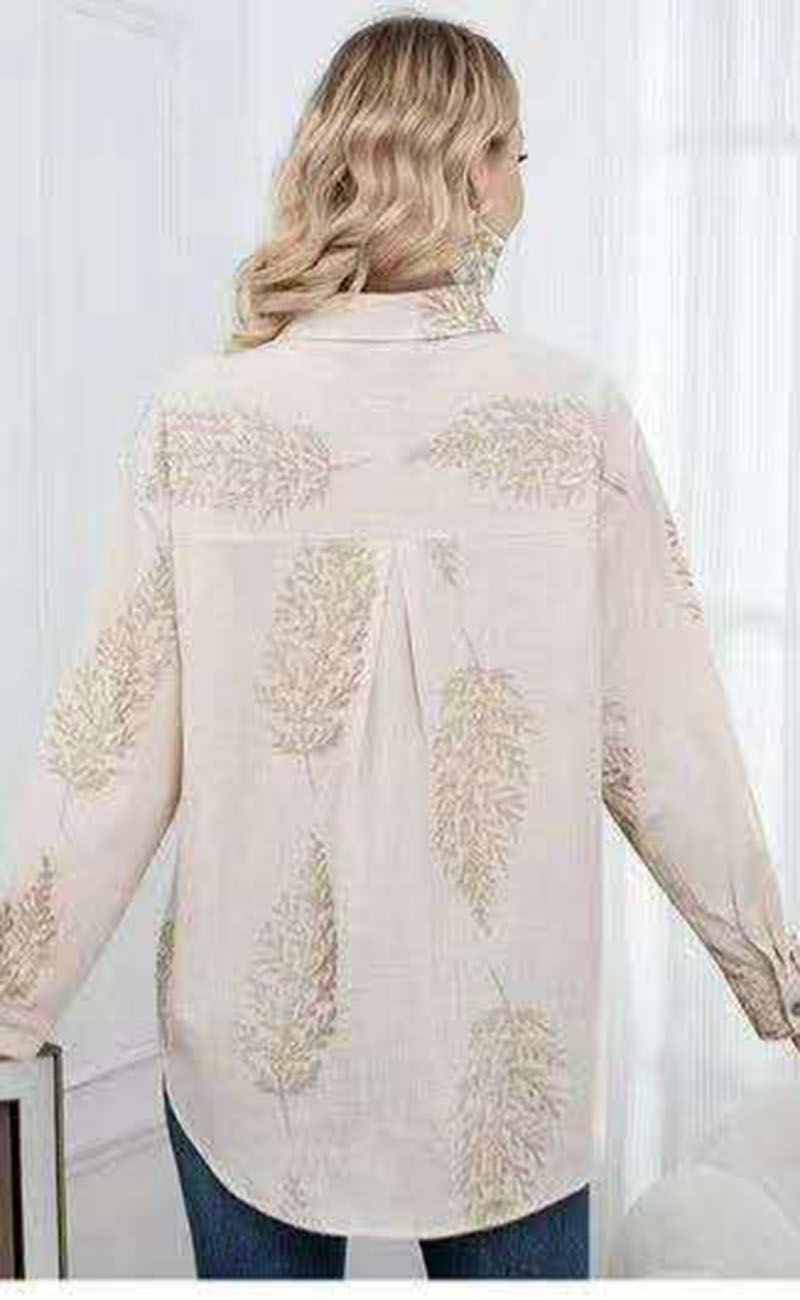 Αυτό το εξαιρετικό λινό πουκάμισο σε φυσική μπεζ απόχρωση ξεχωρίζει για την ανάλαφρη υφή του και τις περίτεχνες λεπτομέρειες που του χαρίζουν έναν boho-chic χαρακτήρα. Το σχέδιο διακοσμείται με ανάγλυφα floral κεντήματα σε γήινους τόνους, τα οποία απλώνονται ομοιόμορφα σε όλη την επιφάνεια του μπροστινού μέρους και των μανικιών. Διαθέτει κλασικό γιακά, μακριά μανίκια με δυνατότητα αυξομείωσης και ένα κομψό ασύμμετρο τελείωμα που είναι μακρύτερο στο πίσω μέρος. Η χαλαρή και άνετη γραμμή του το καθιστά ιδανικό για αέρινες εμφανίσεις, ενώ το κλείσιμο με κουμπιά μπροστά προσφέρει πρακτικότητα και στυλ. Συνδυάστε το με το αγαπημένο σας τζιν ή ένα λευκό υφασμάτινο παντελόνι για ένα απόλυτα σικ και καλοκαιρινό αποτέλεσμα.