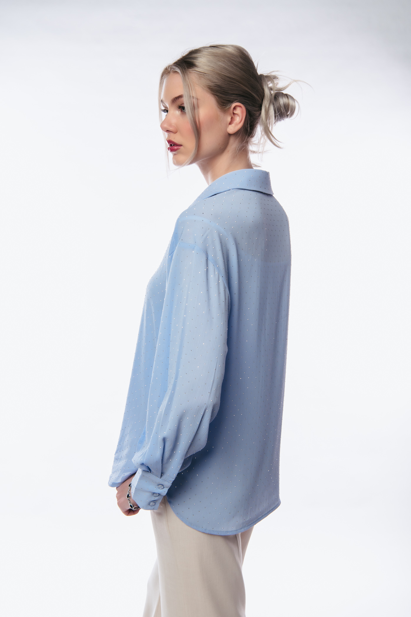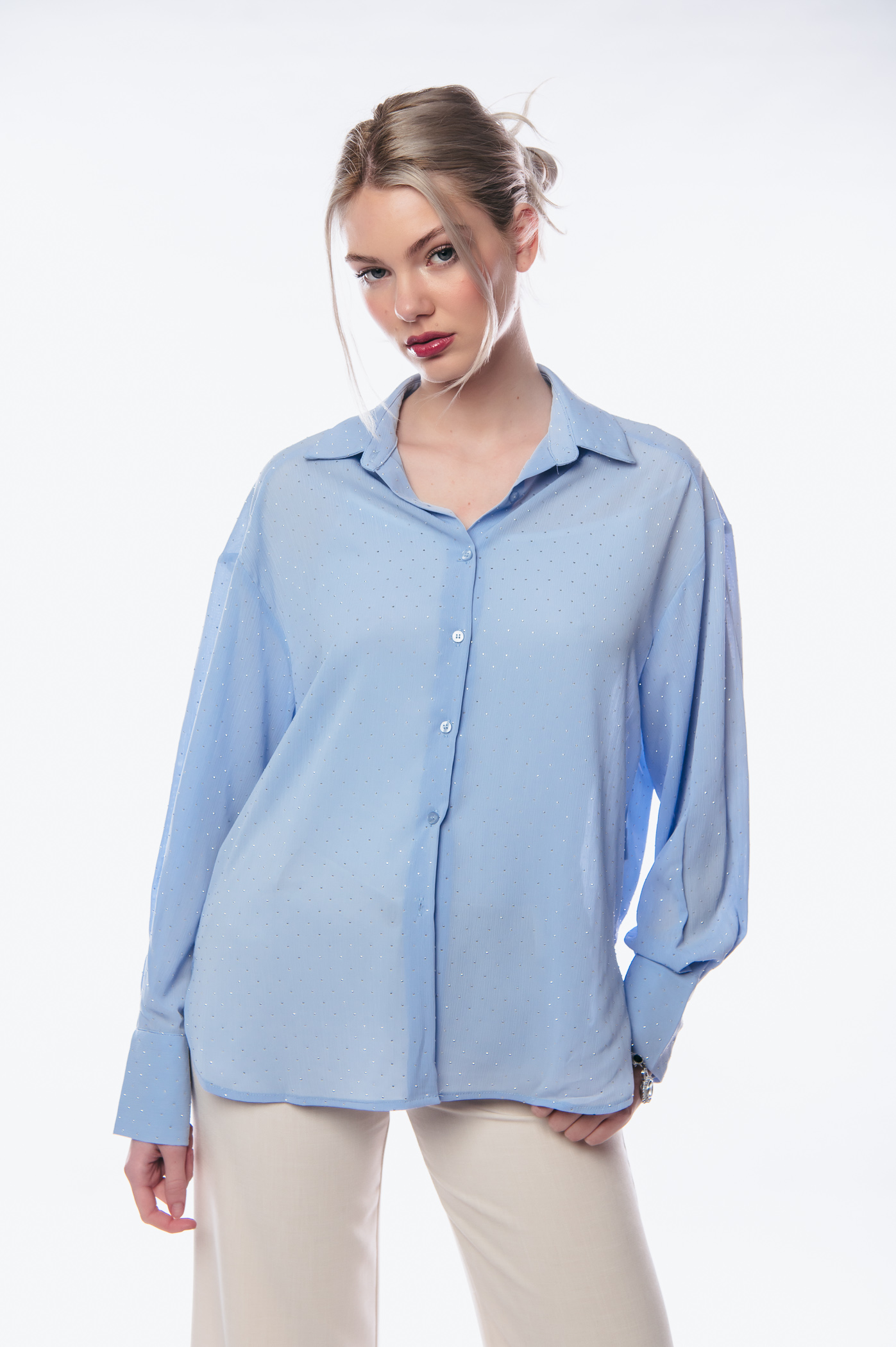 Πουκάμισο με στρας all over ,γιακά και κουμπιά στο μπροστά μέρος.