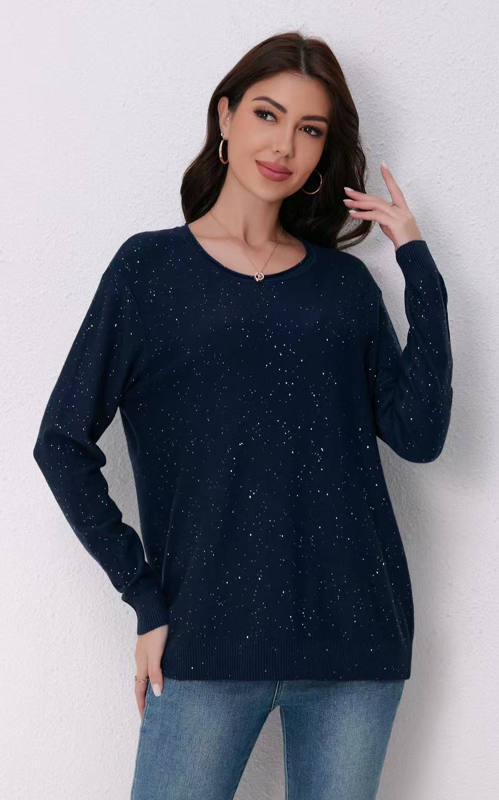 Σκούρο μπλε πουλόβερ με αστραφτερά διακοσμητικά-B-1351
