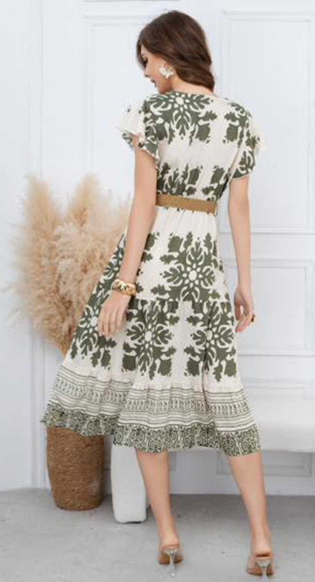 Αποπνέοντας μια αύρα μεσογειακής πολυτέλειας, αυτό το midi φόρεμα αποτελεί την επιτομή του κομψού resort wear. Είναι κατασκευασμένο από ελαφρύ, αέρινο ύφασμα σε λαδί ή καφέ ή μαύρη απόχρωση, ιδανικό για να προσφέρει δροσιά και άνεση στις ζεστές καλοκαιρινές ημέρες.