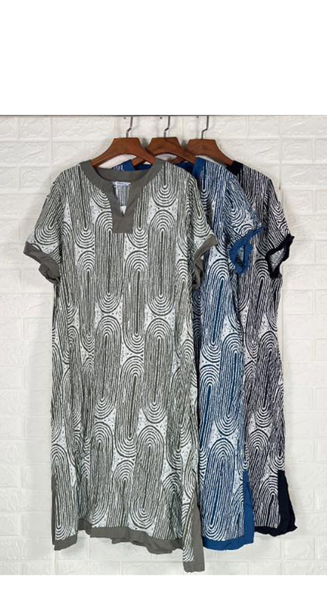 Σχεδιαστικά, διαθέτει στρογγυλή λαιμόκοψη με διακριτικό άνοιγμα V και κοντά, άνετα μανίκια που καταλήγουν σε μονόχρωμη λαδί φάσα. Η γραμμή του είναι χαλαρή και αέρινη, ενώ τα διακριτικά ανοίγματα στα πλαϊνά του τελειώματος χαρίζουν επιπλέον κίνηση και άνεση. Πρόκειται για ένα κομμάτι που συνδυάζει την πρακτικότητα με την υψηλή αισθητική, ιδανικό για πρωινές εμφανίσεις στην πόλη ή απογευματινές βόλτες στις διακοπές. Διαθέσιμο σε λαδί, μπλε και μαύρο χρώμα.