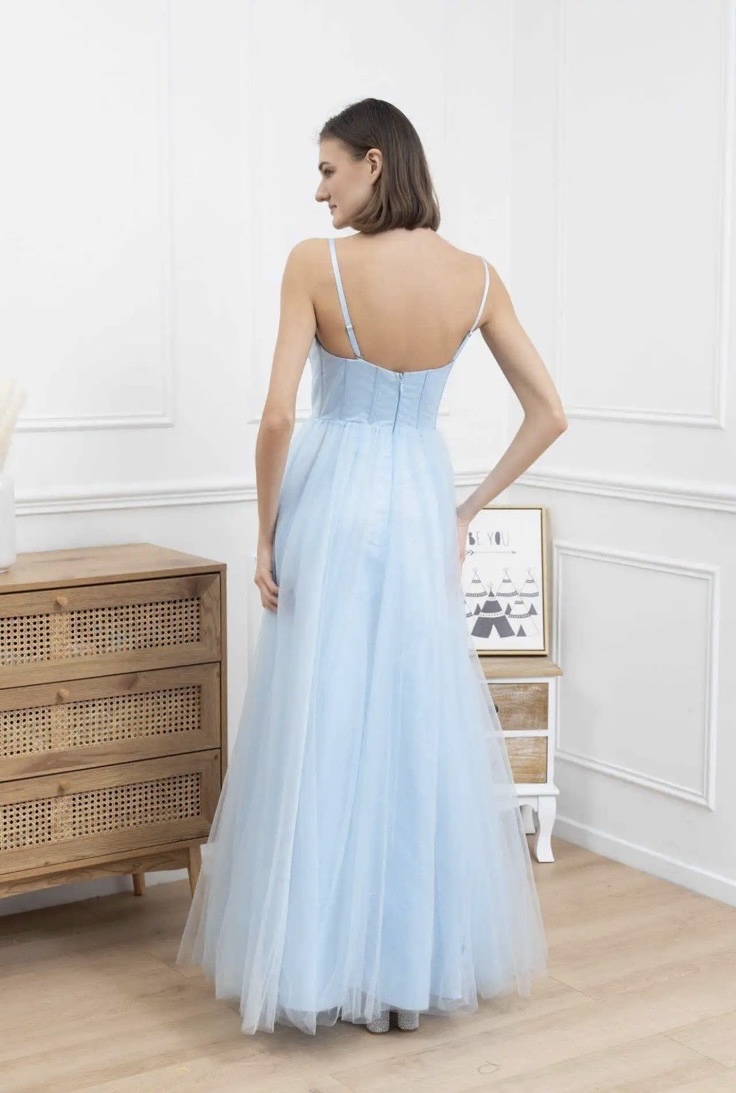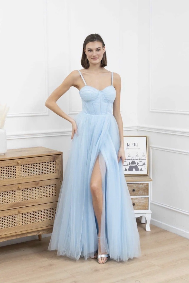 Φόρεμα αμπιγιέ maxi με μπούστο ,φερμουάρ στο πίσω μέρος και σκίσιμο στην μία πλευρά.