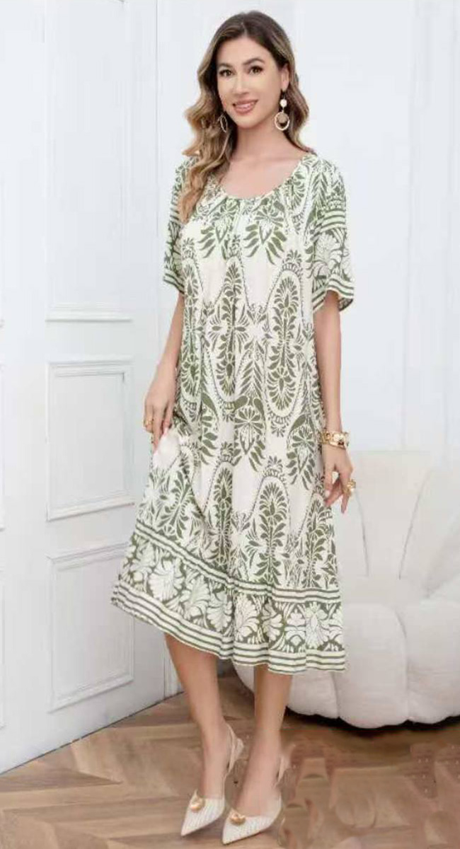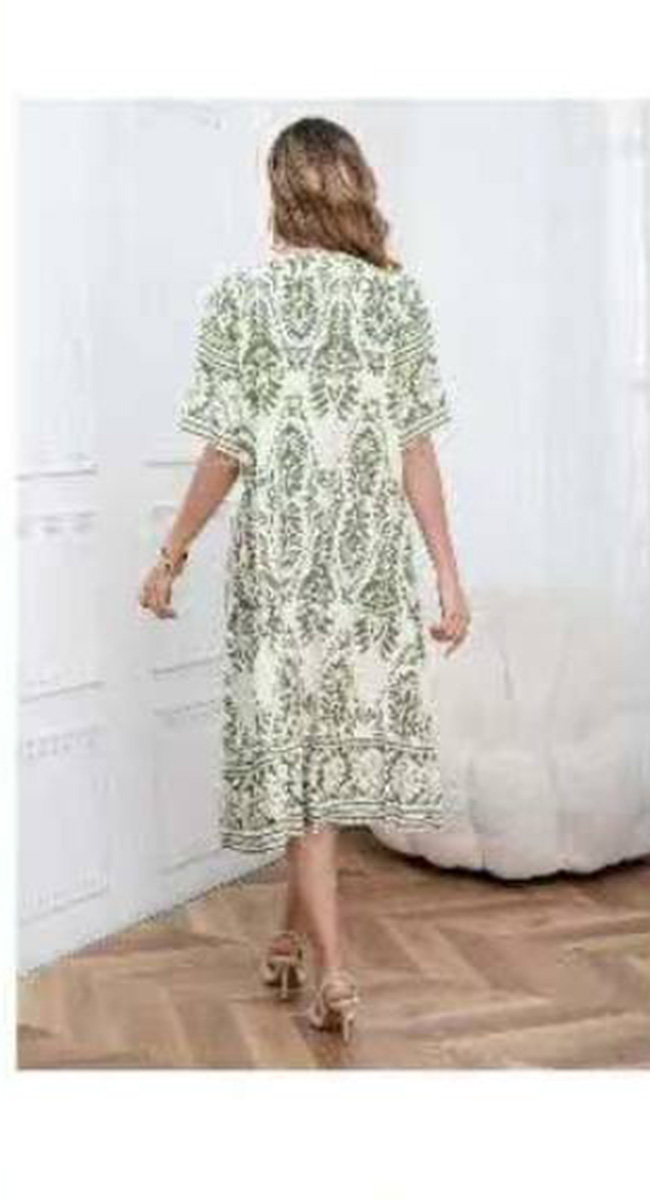 Γυναικείο Midi Αέρινο Φόρεμα με Ethnic Μοτίβο σε Λαδί Απόχρωση-A-8129