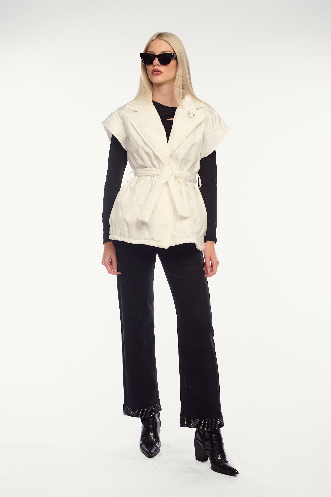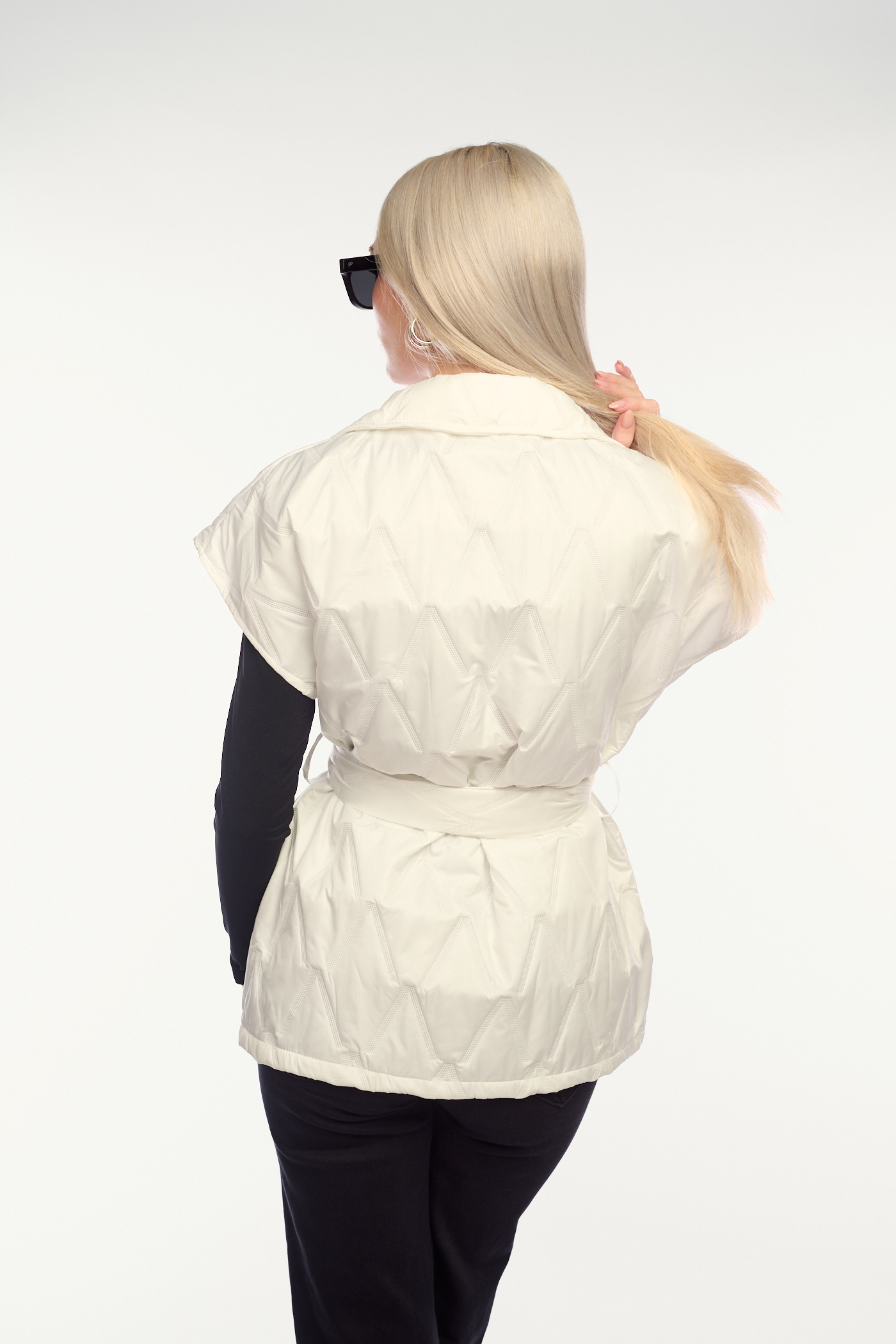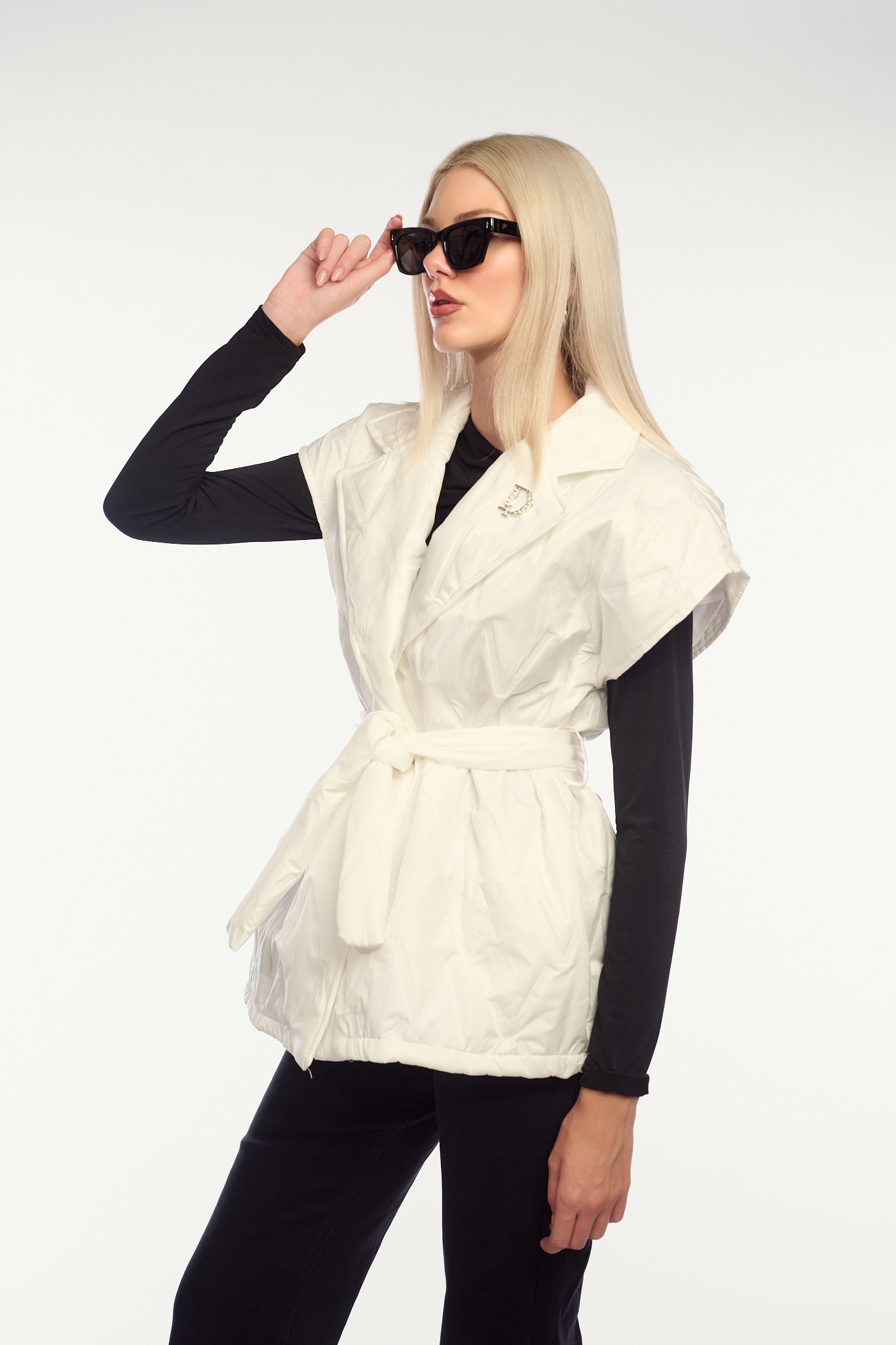 Λευκό αμάνικο μπουφάν με ζώνη-4353
