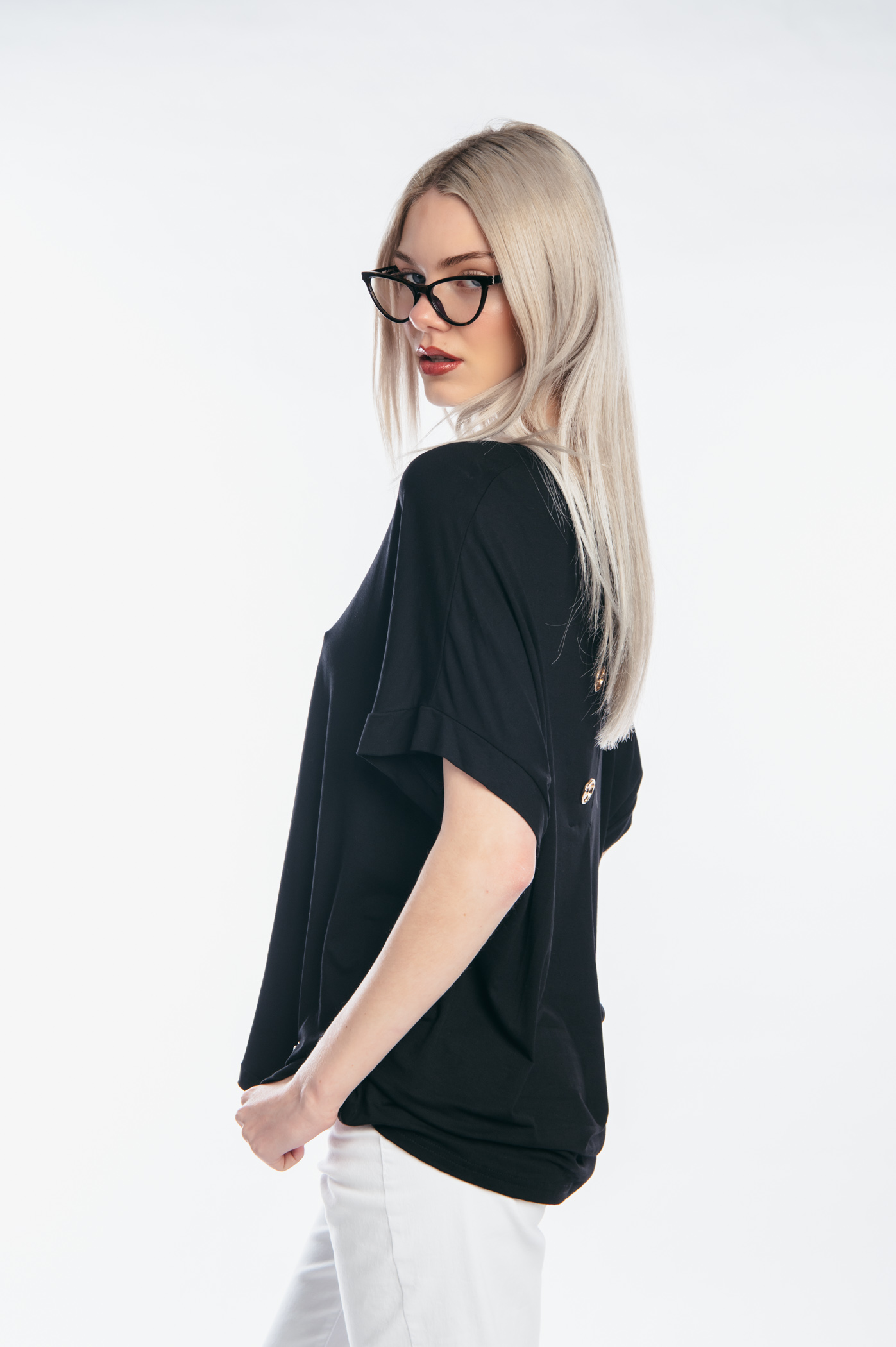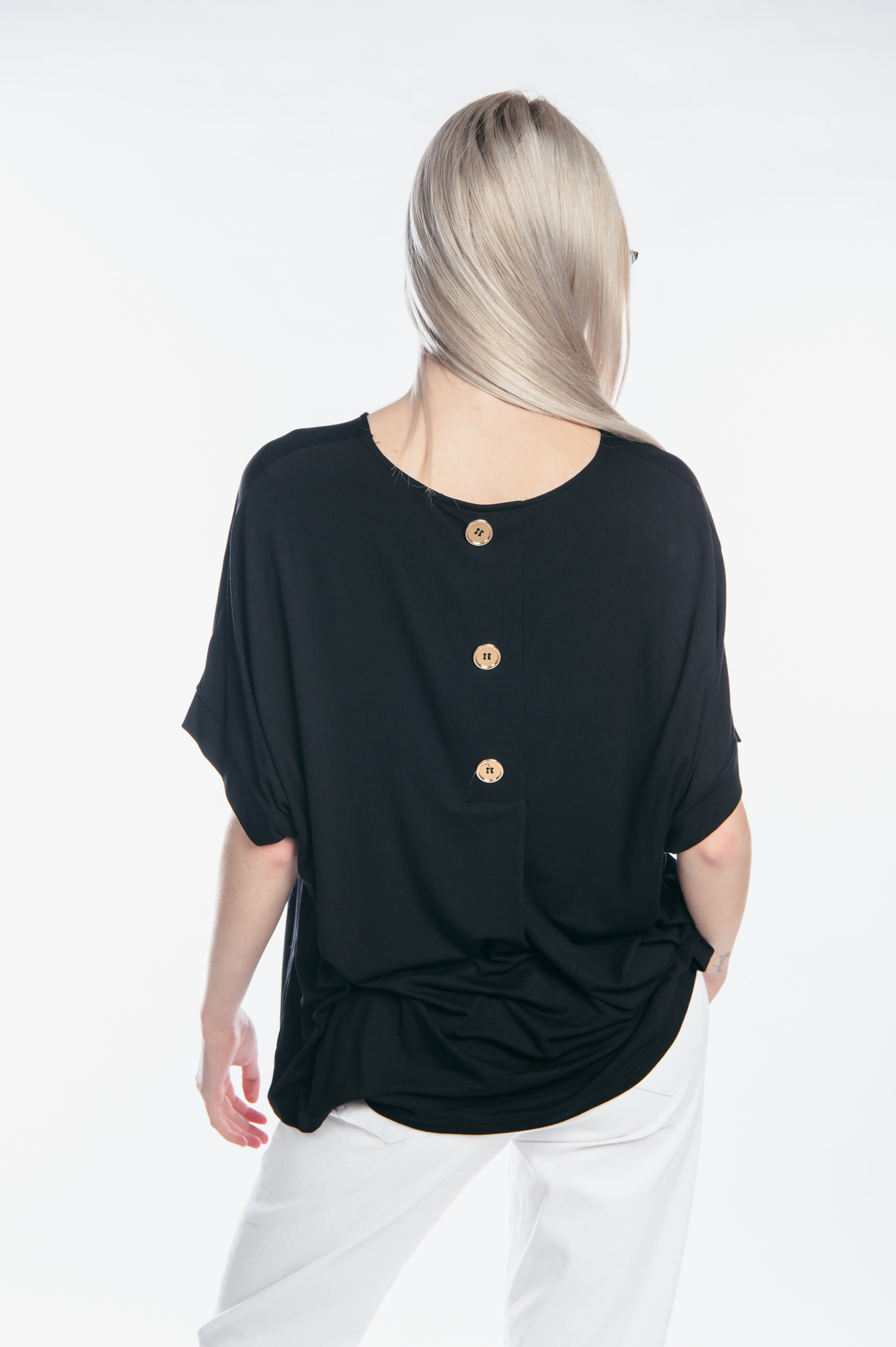 Μπλούζα κοντομάνικη με κουφόπιετα και διακοσμητικά κουμπιά στο πίσω μέρος.ω