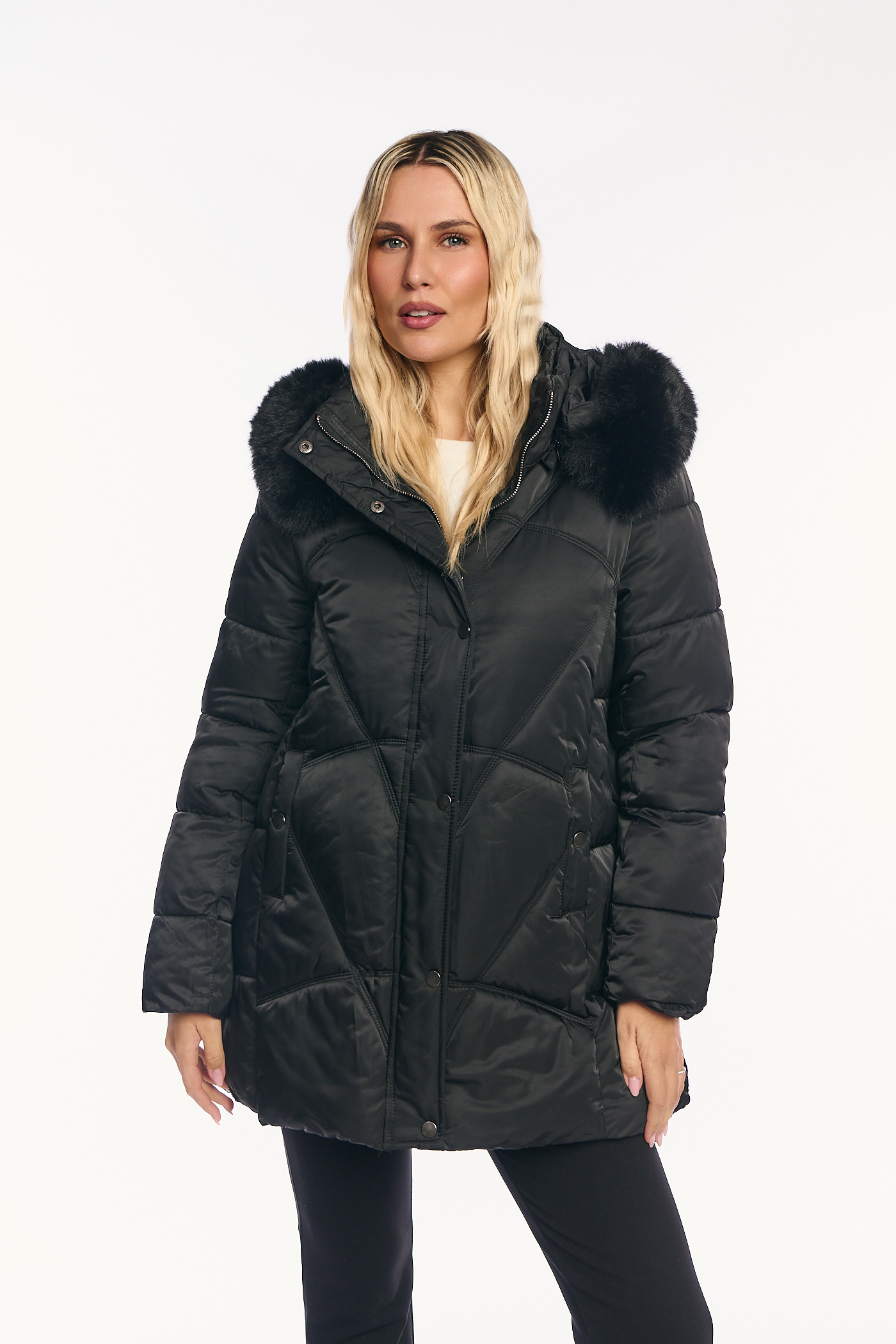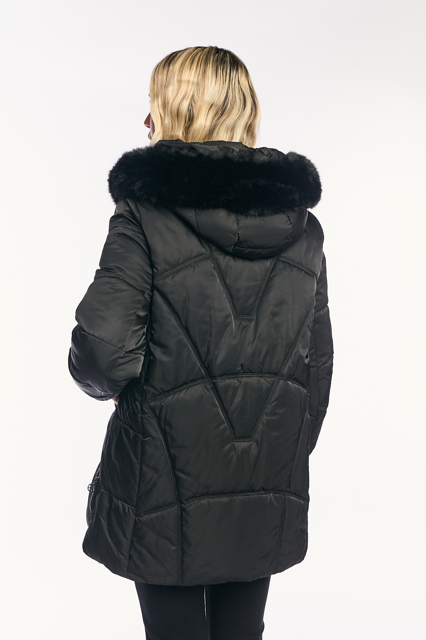 Μπουφάν Καπιτονέ Μεσαίου Μήκους με Κουκούλα και Γούνινο Τελείωμα Μαύρο-A26279B