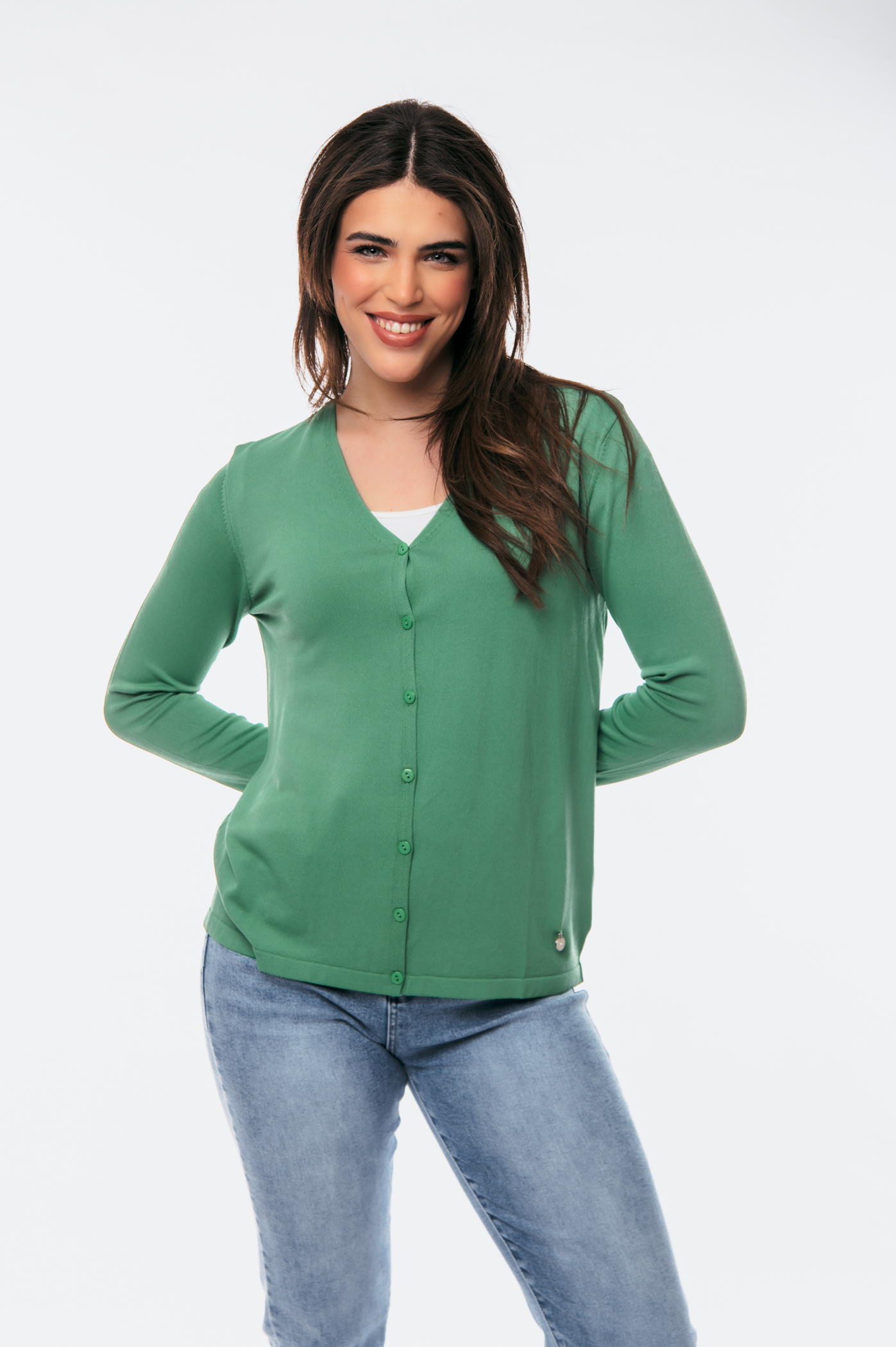Ζακέτα μακρυμάνικη με ve και κουμπιά στο μπροστά μέρος.